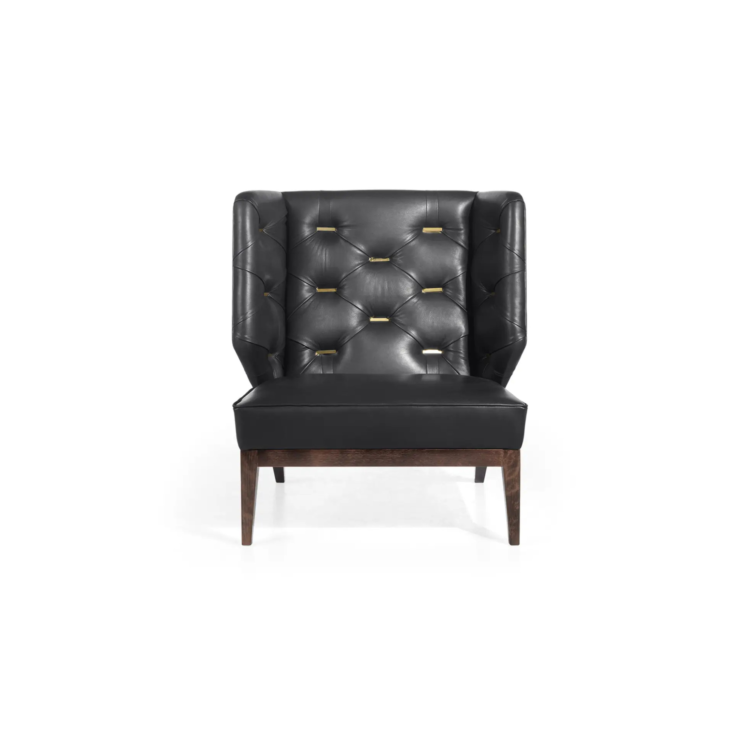 Berchet is a vintage style armchair featuring a capitonné-detailed internal back that exudes sophistication and refinement. It is complemented by metallic plates in glossy or brushed finishes, including a central Roberto Cavalli plate with Swarovski crystals. The chair rests on a luxurious base, combining classic style with modern flair.