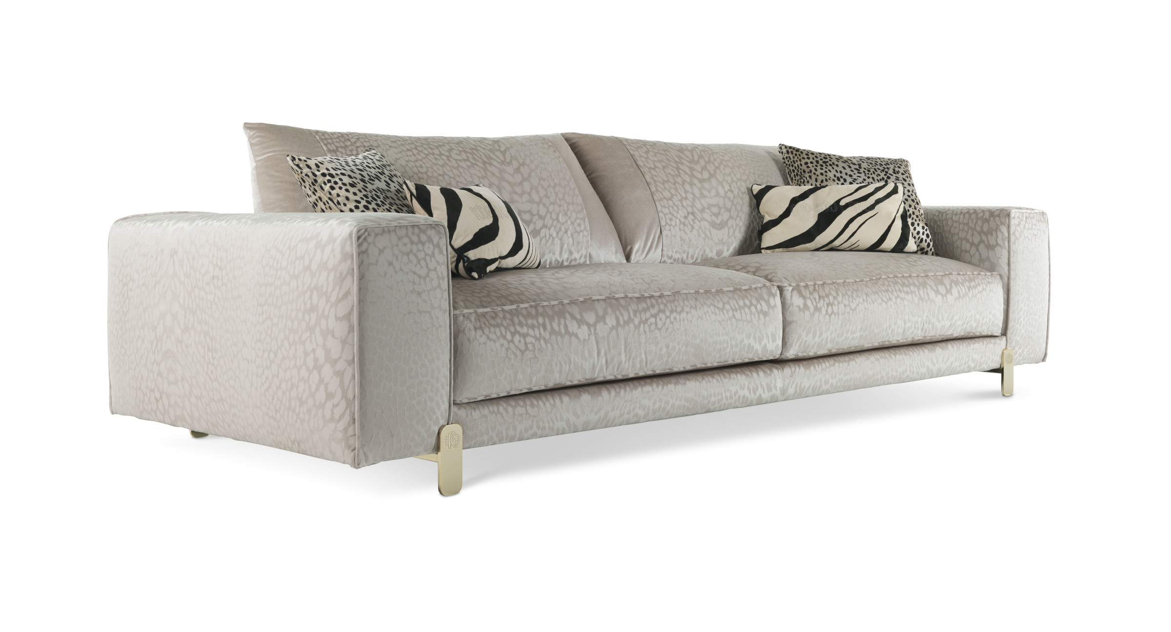 In the Caicos sofa, linear shapes acquire a bold and seductive charm. The upholstery with fabrics or leathers of the collection, characterized by the presence of the iconic patterns of the Maison, such as the animalier designs, meet the luminosity of the metal feet with Roberto Cavalli logo to create a collection with an unmistakable glam-chic flair.