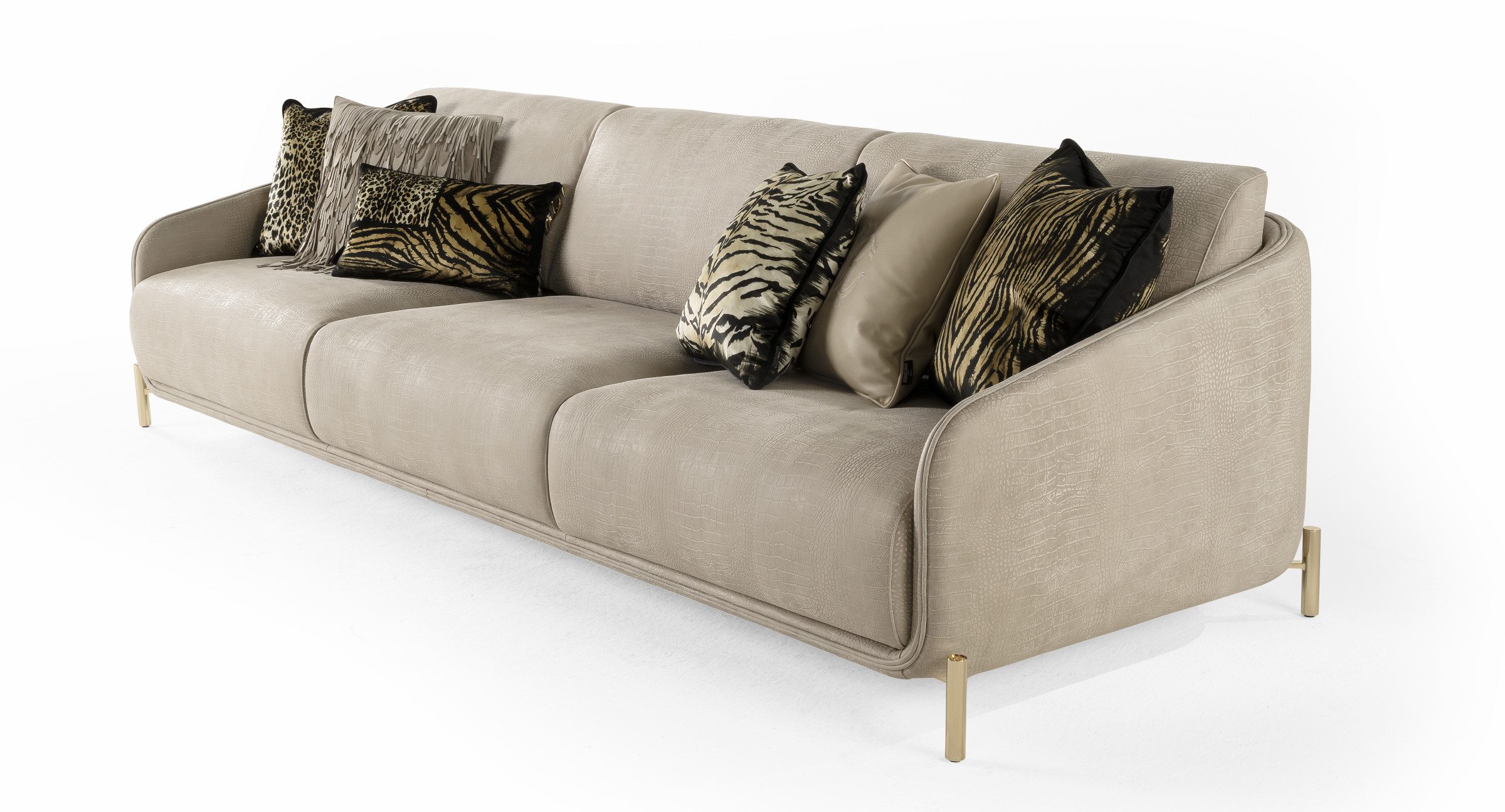 A one-of-a-kind, sensual sofa – the perfect expression of the true essence of the brand. Available in different textural and luxurious fabrics and leather, the sofa is enriched with cushions with animalier patterns, that wink at the wildest spirit of Roberto Cavalli Home Interiors.
