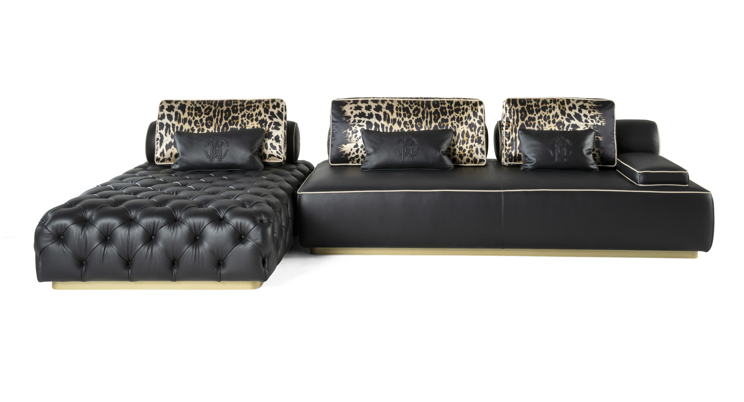 Darlington.2 is an iconic sectional sofa of the Roberto Cavalli Home Interiors collection, characterized by a refined capitonné finishing. The sofa is available in different versions, all perfectly representing the brand’s sensual and bold character, and is completed by cushions with wild animal patterns.