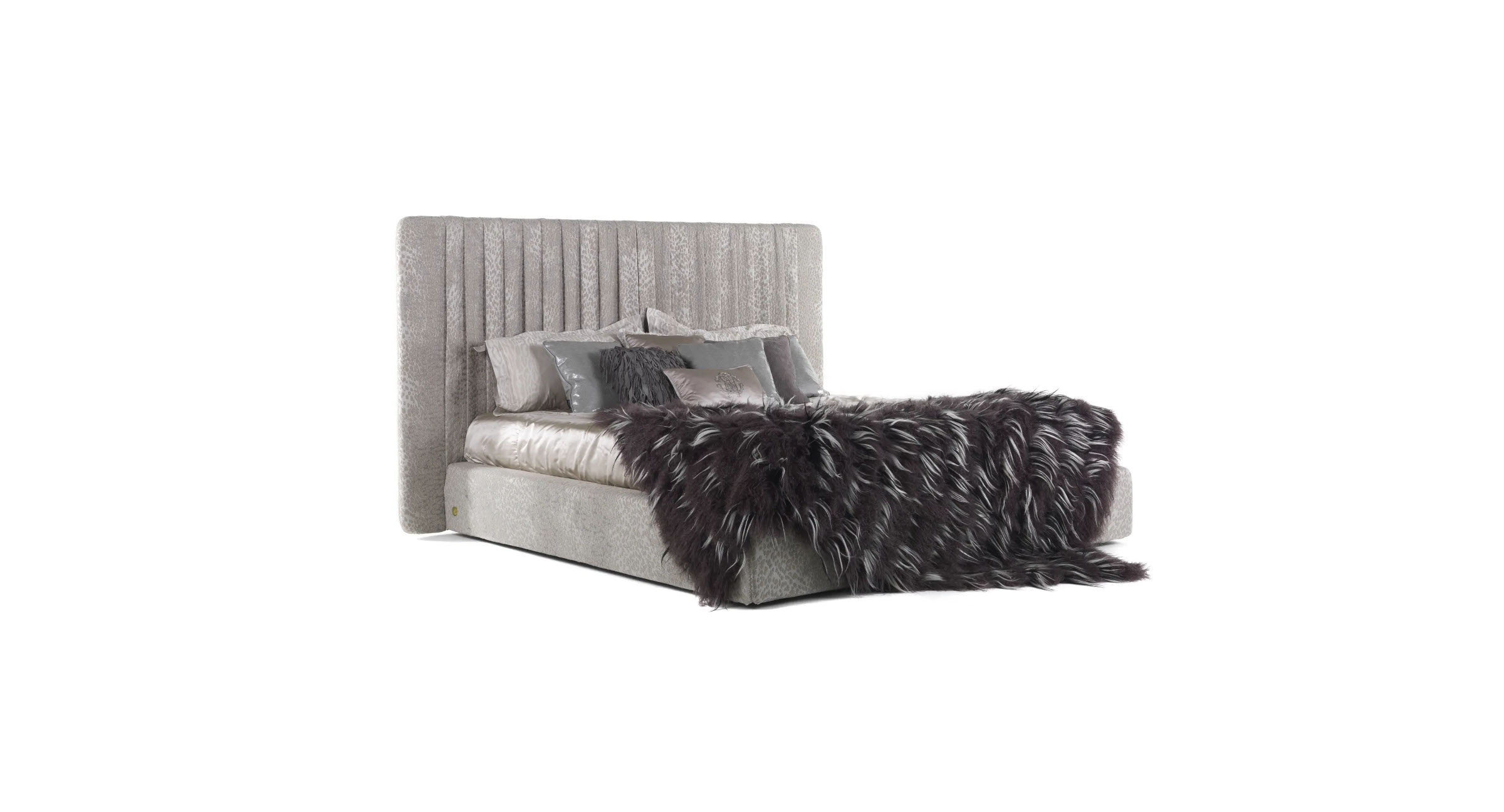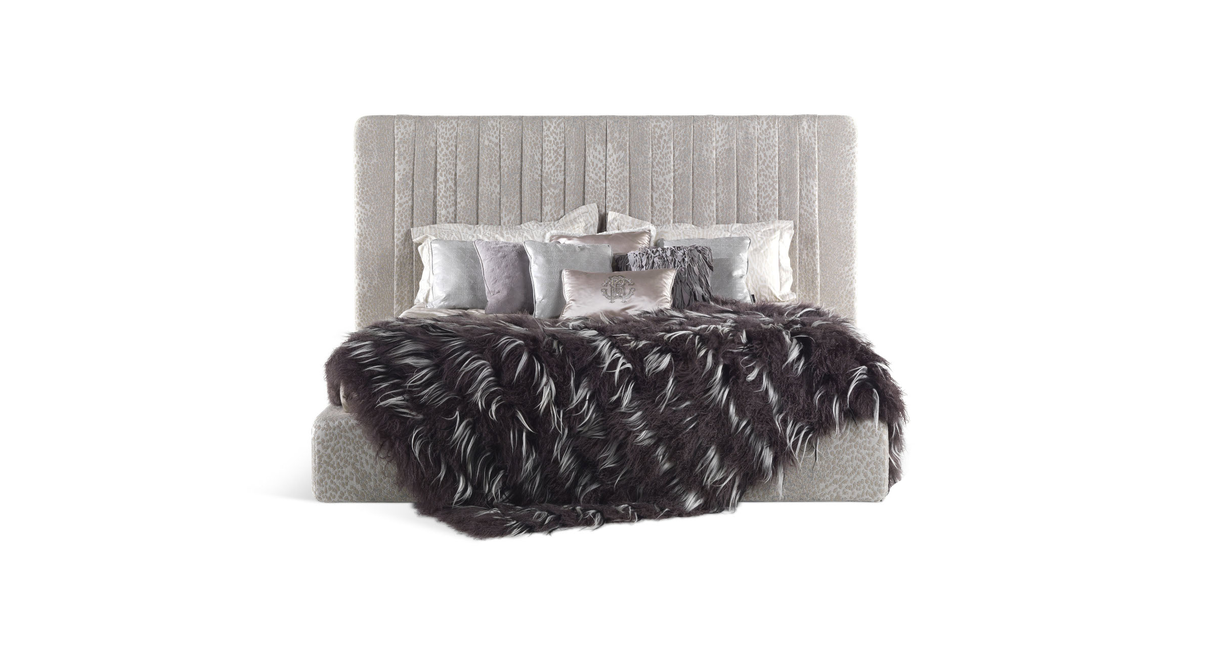 The refined processing of the headboard is the main distinguishing feature of the Kingstone bed: the pleated elements recall the typical manufacturing of Roberto Cavalli’s bags, in a perfect combination of experimental design and sartorial decoration. The bed is available with a wide or high headboard, it can be made with or without feet and covered with leathers or fabrics from the collection.