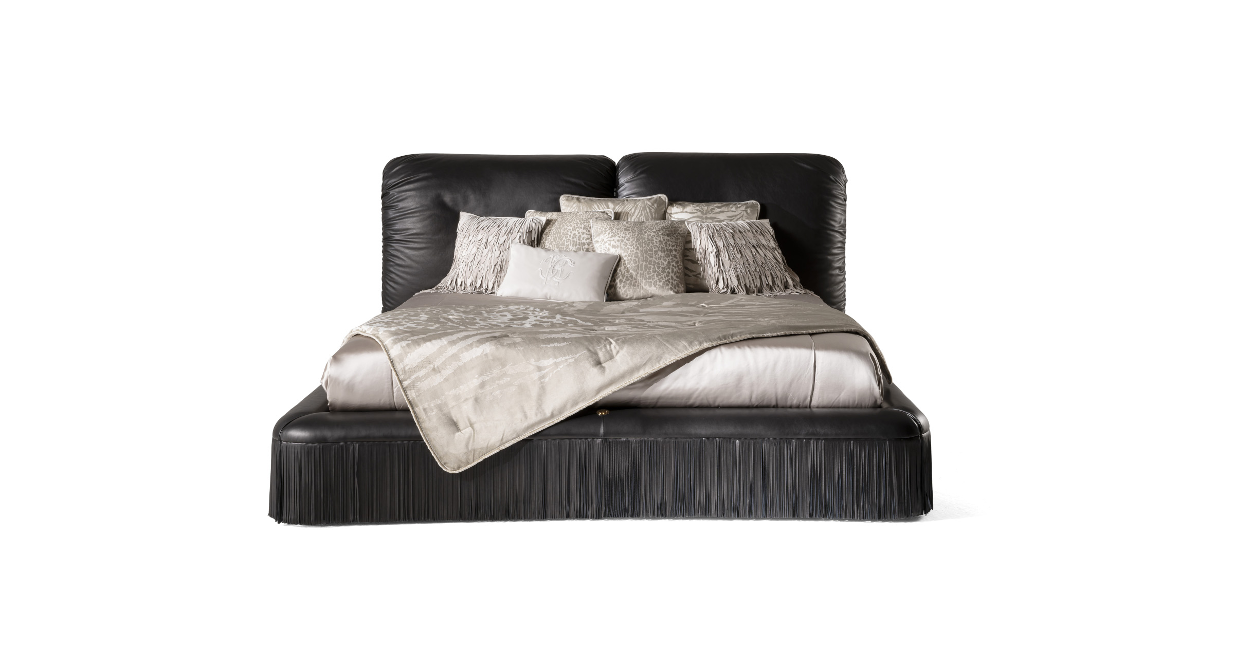 Malawi is a welcoming and charming bed whose design is inspired by the deepest soul of Roberto Cavalli Home Interiors. Its feminine, ultra-chic style is reflected in the seductive lines and preciousness of the leather upholstery, while the artisan tradition of leather craftsmanship is revealed in the decorative fringes that embellish the bed frame.