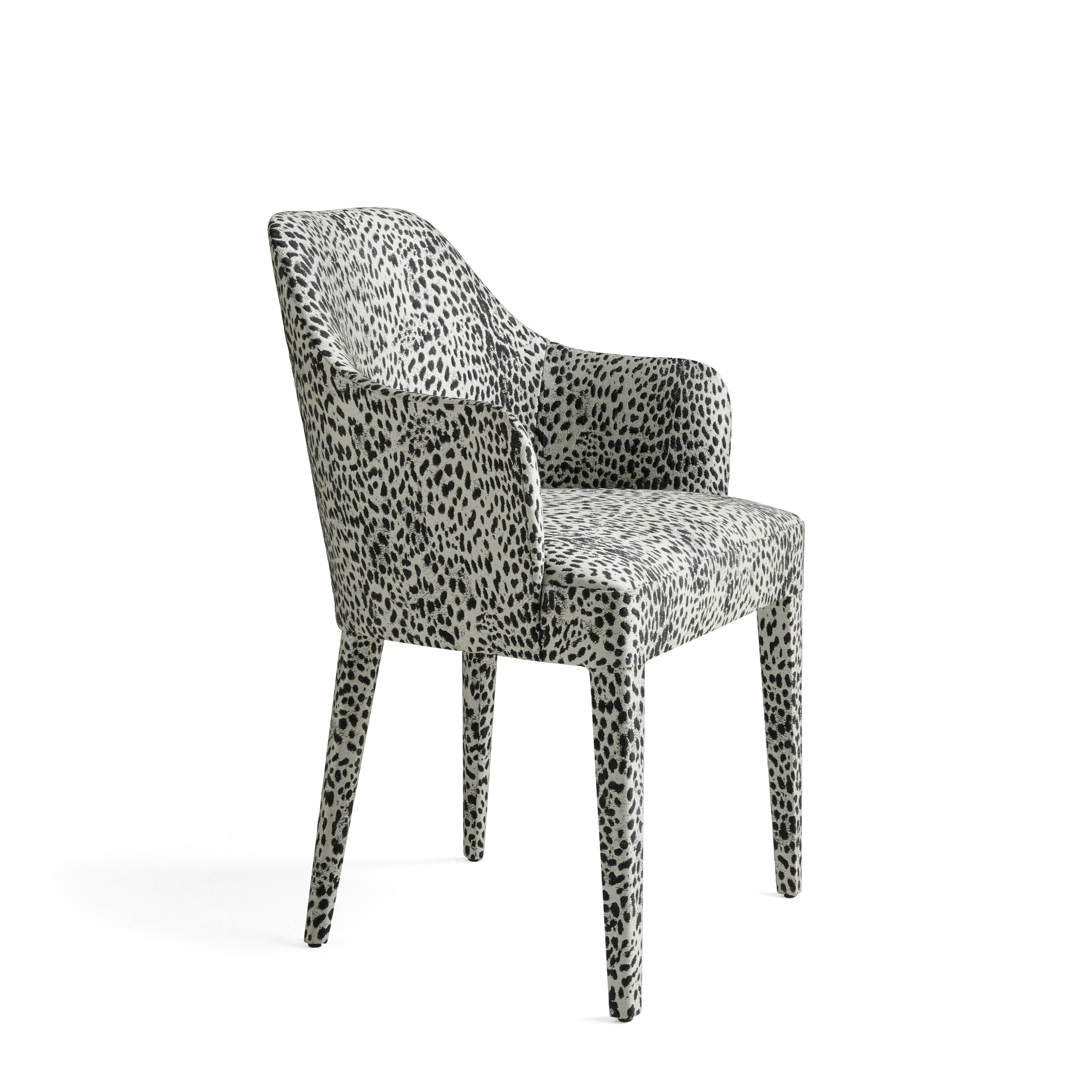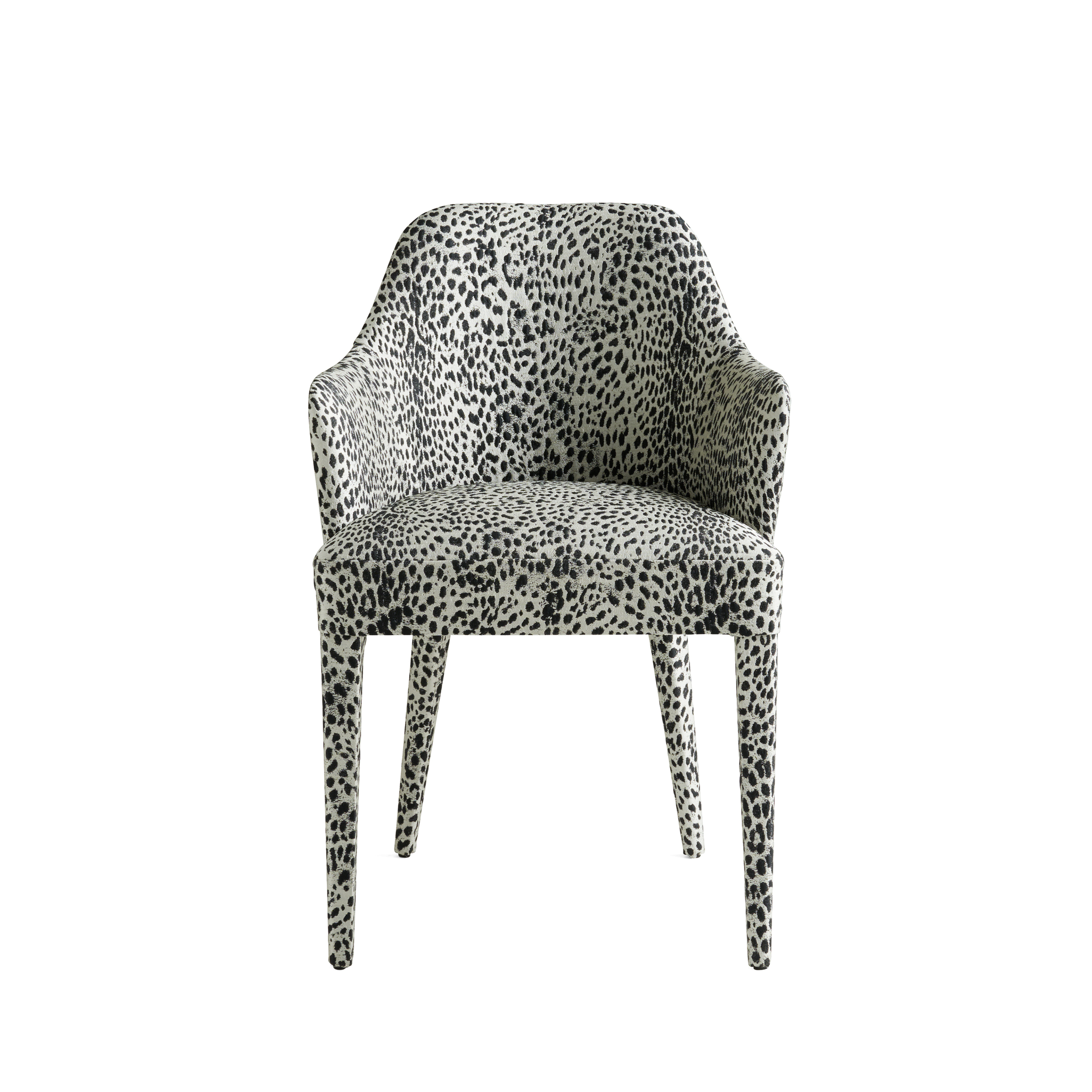 Miwi is a chair with soft and welcoming shapes. Its linear and contemporary design is enlivened by the upholstery in the iconic fabrics of the Roberto Cavalli Home Interiors collection.