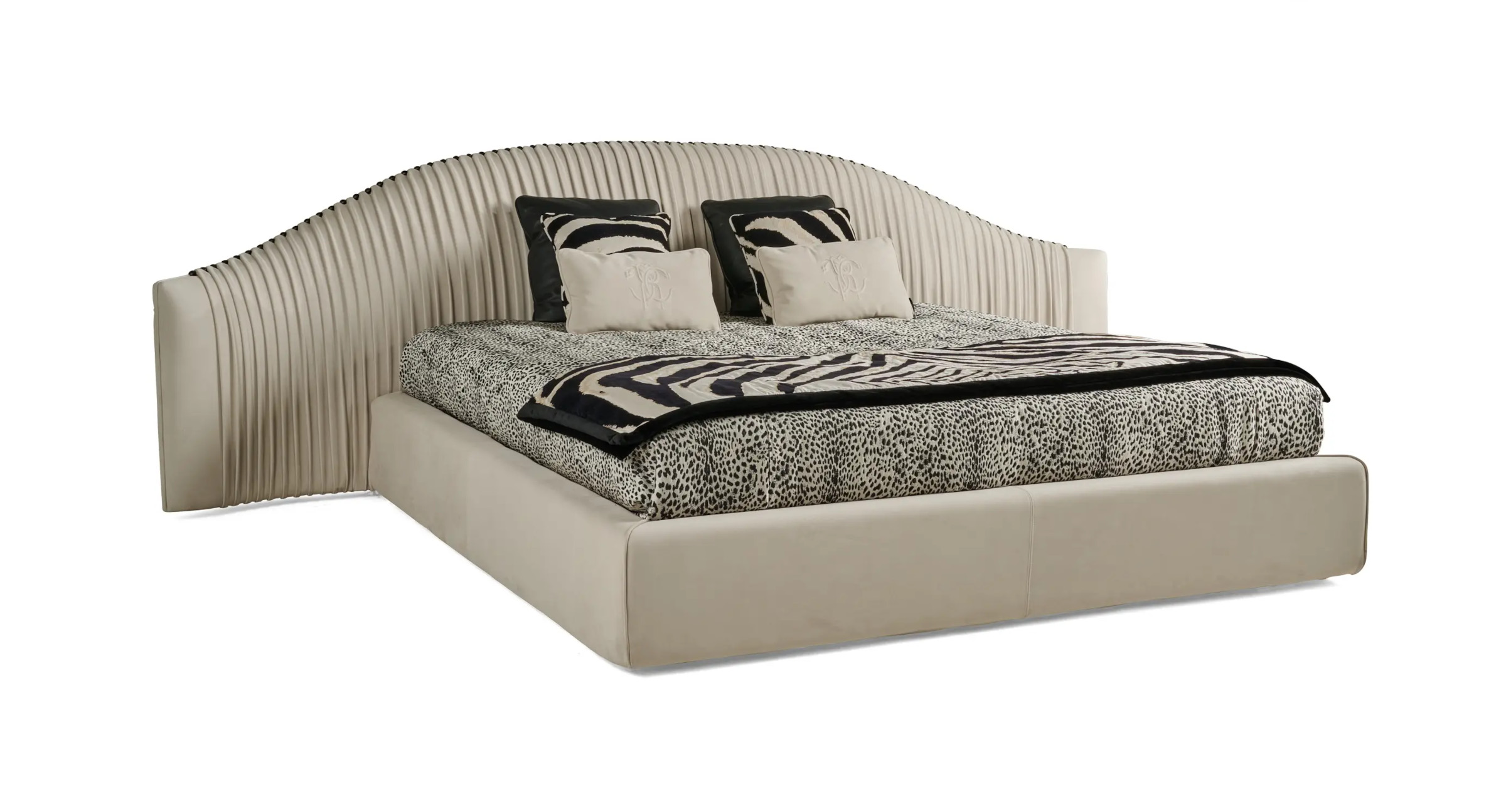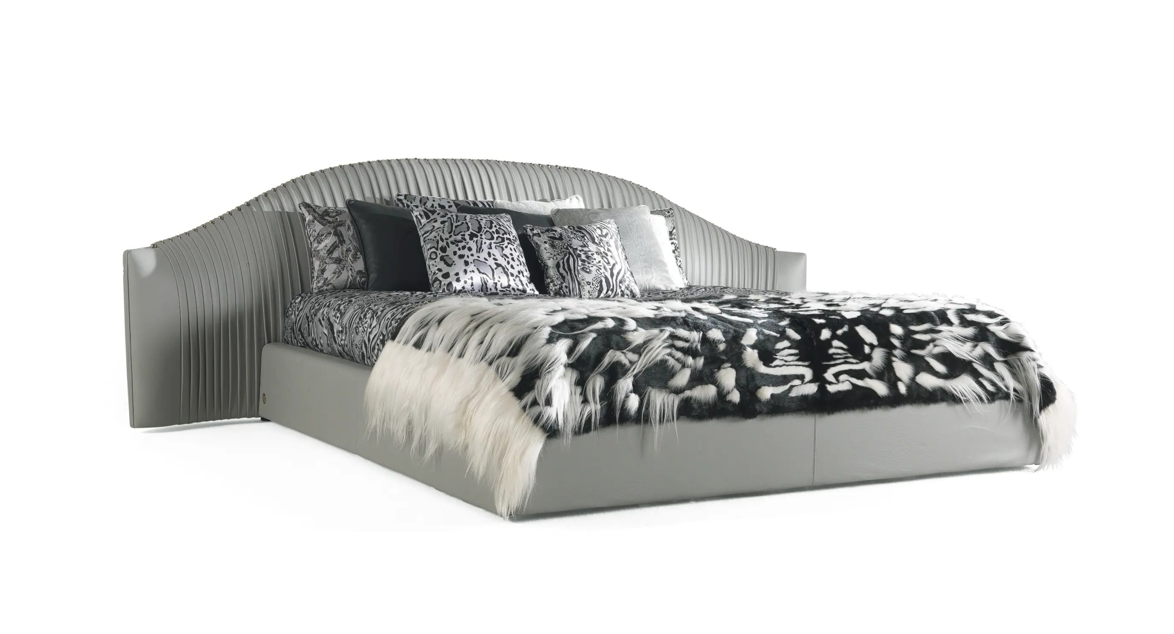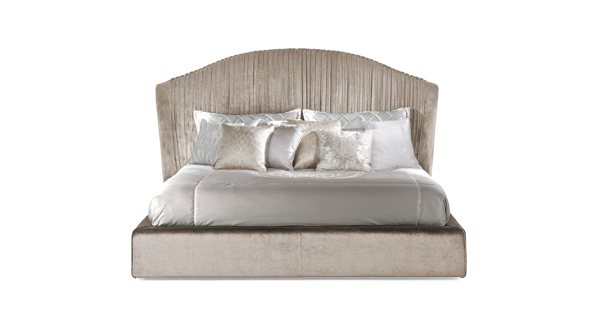 The refined manufacturing of the headboard, enriched with decorative studs, is the main feature of the Sharpei bed, an iconic piece of furniture which combines sartorial manufacturing with sophisticated decoration.