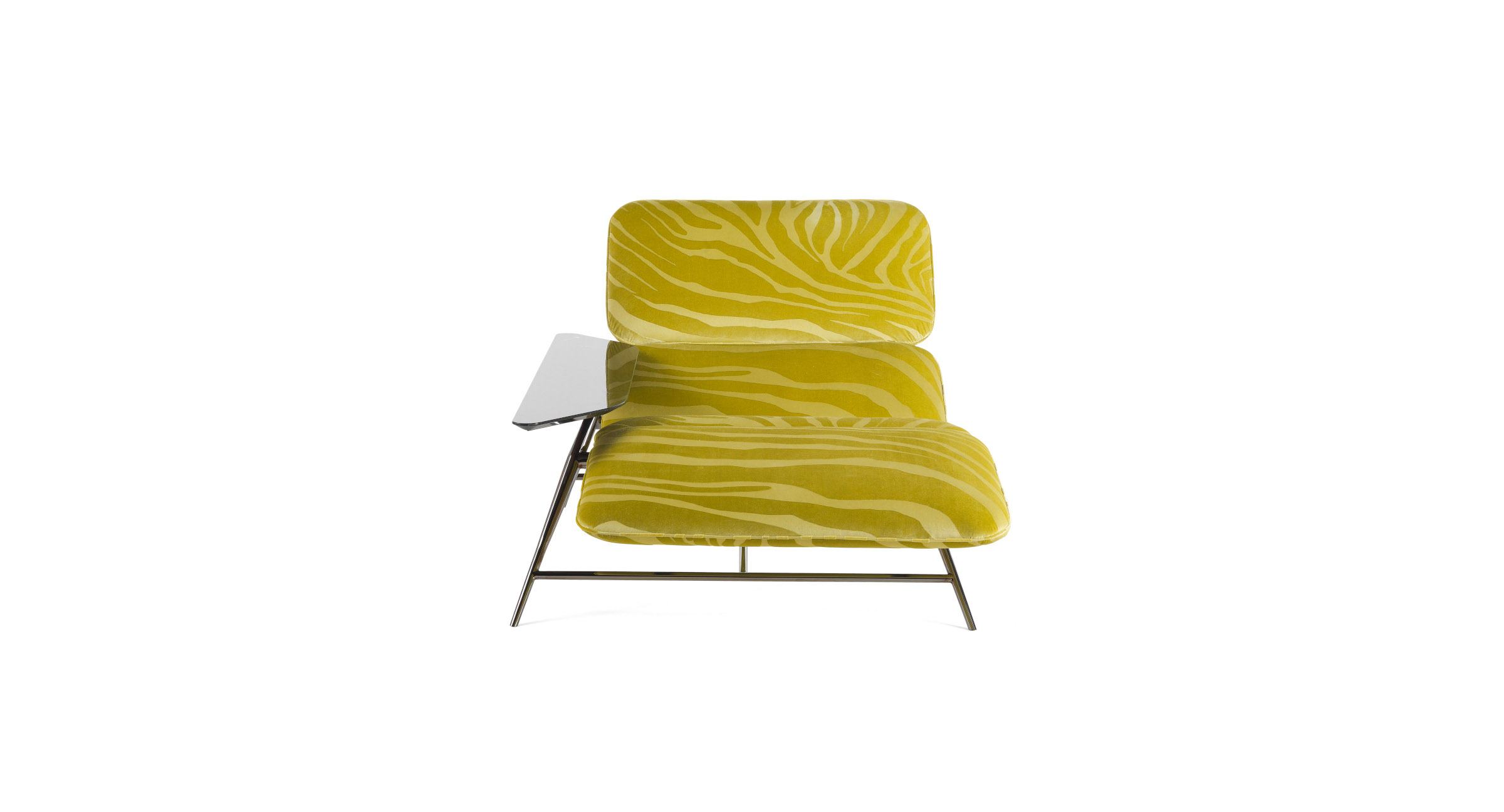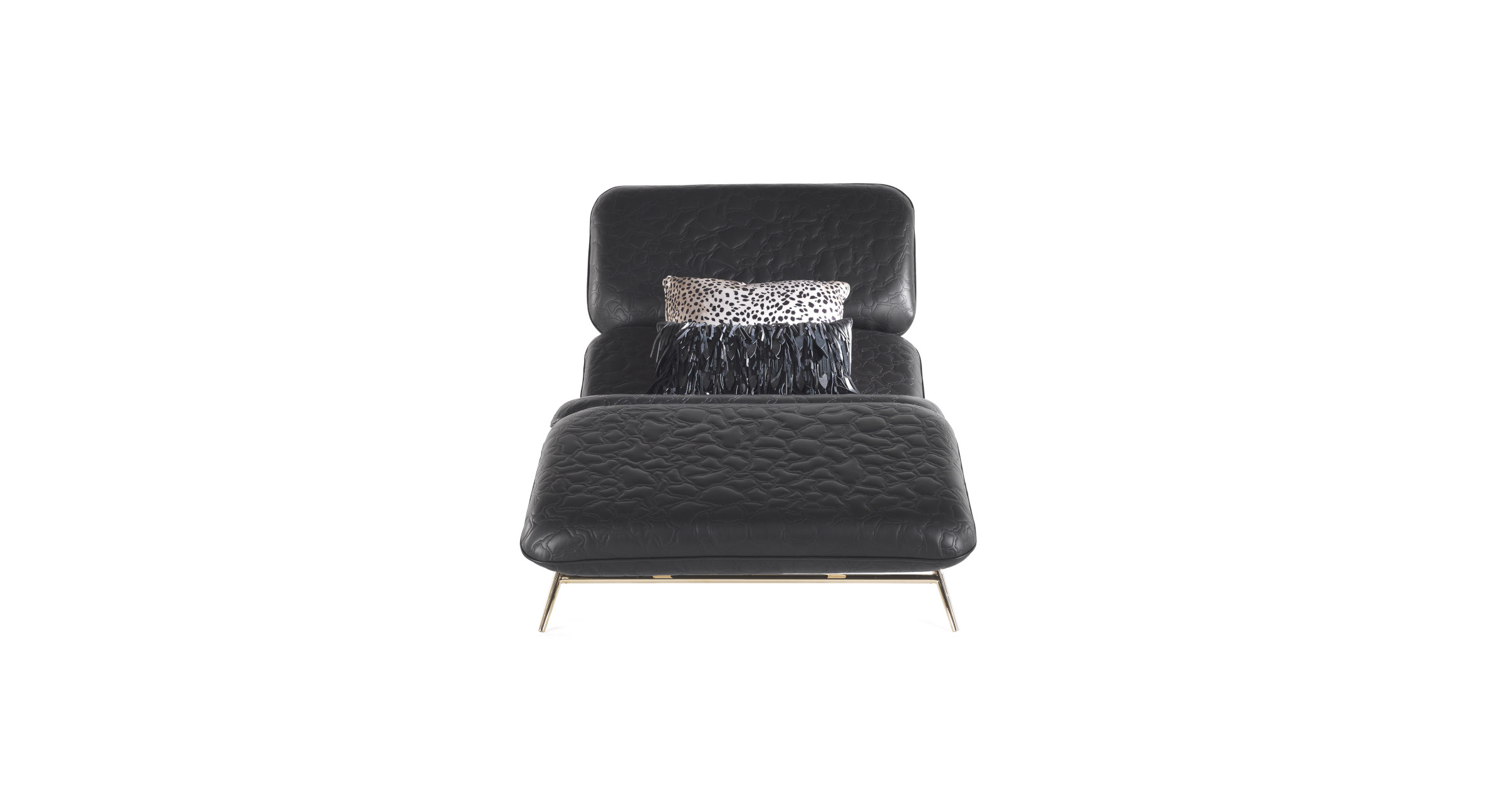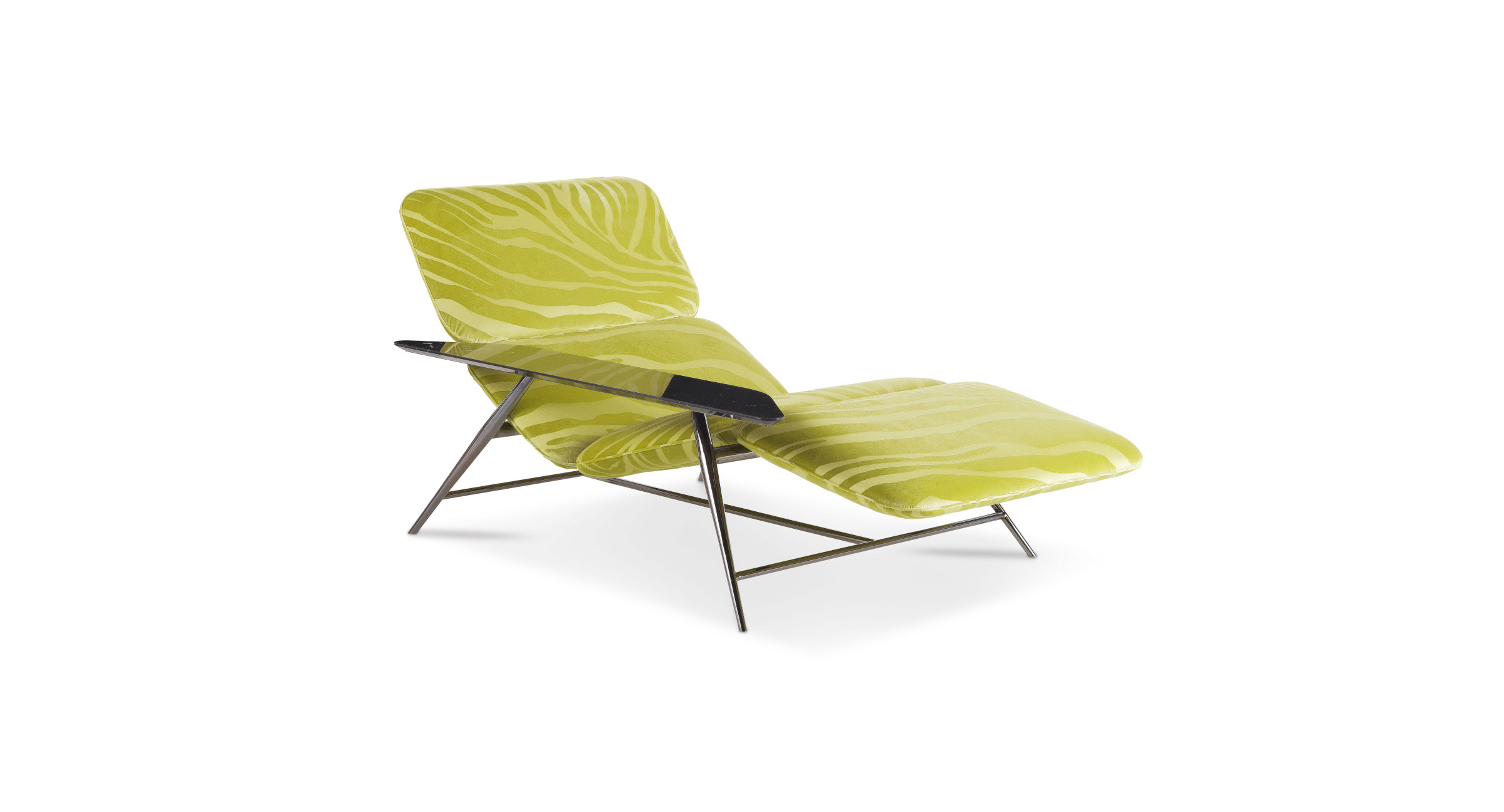 The Tahiti chaise longue is an iconic piece of furniture that conquers with its essential lines and sinuous shapes. In perfect balance between comfort and style, the chaise longue brilliantly combines the role of comfortable and ergonomic seat with the practicality of the marble top. An irresistible invitation to relax in pure Roberto Cavalli Home Interiors style.
