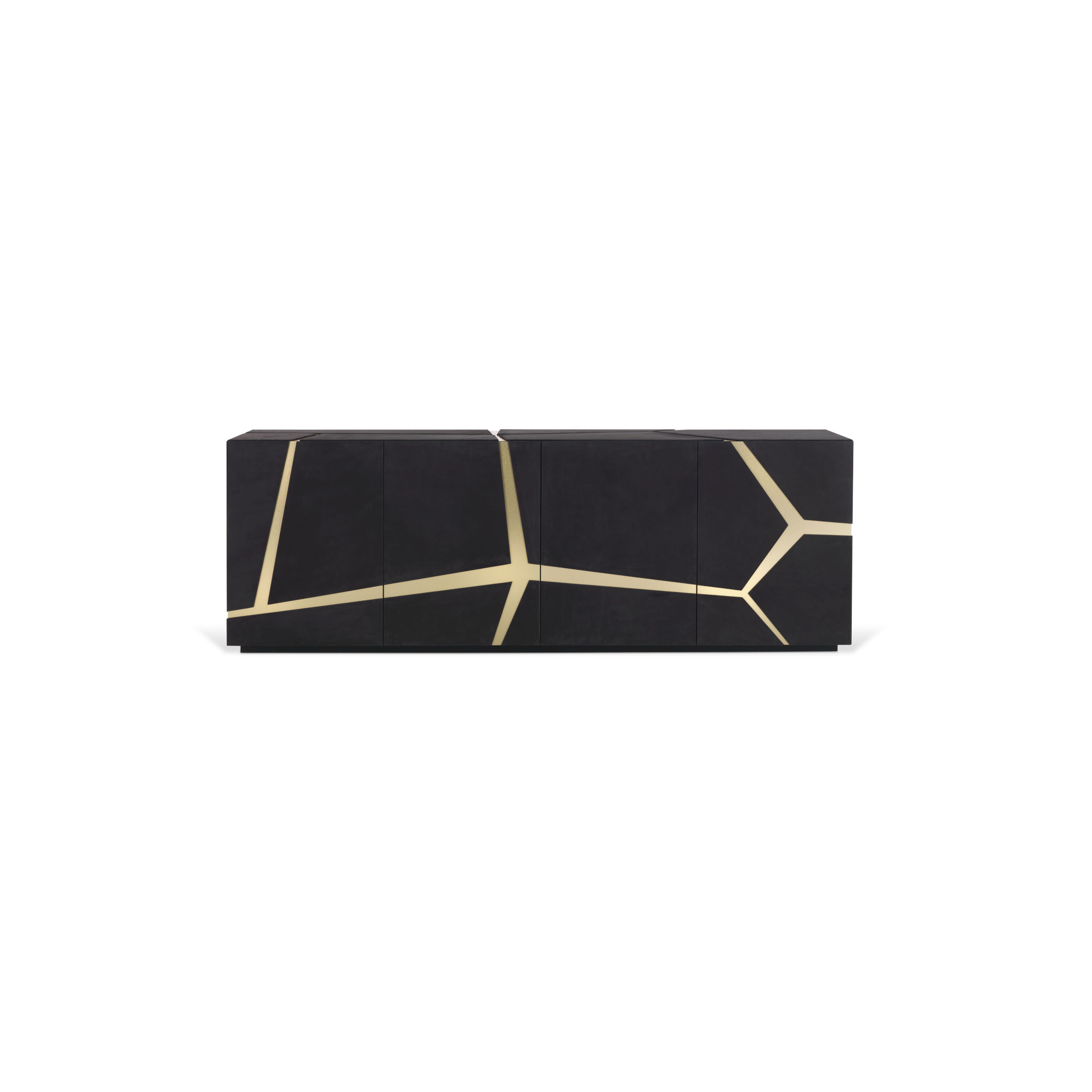 Tonga is a sideboard with a linear design and minimal aesthetic, embellished with metal inserts whose design recalls the iconic animalier giraffe pattern. Distinguished by a sophisticated manufacturing and sophisticated finishes, it is the result of a complex process of craftsmanship of porcelain stoneware.