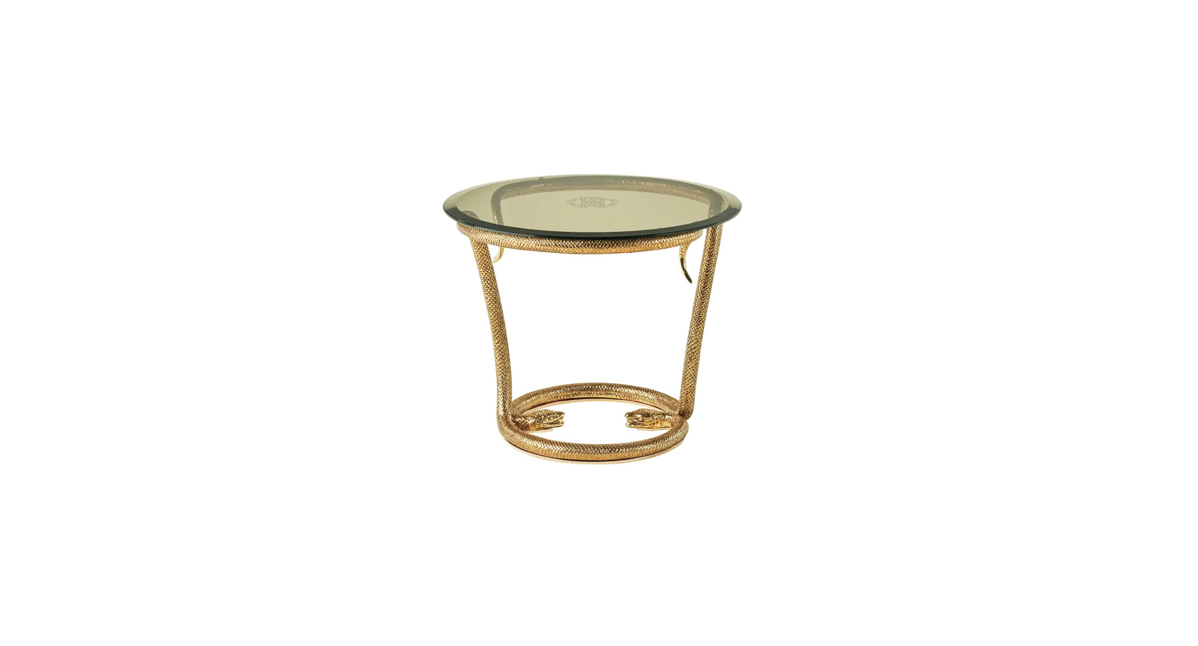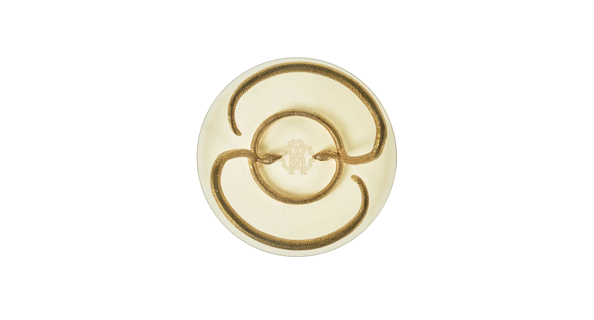 Iconic symbol of the Roberto Cavalli Maison, the snake is transformed into a sculptural base in cast brass in the Yoa coffee table. The top in bevelled glass lightens the whole, lending the table a refined charm.