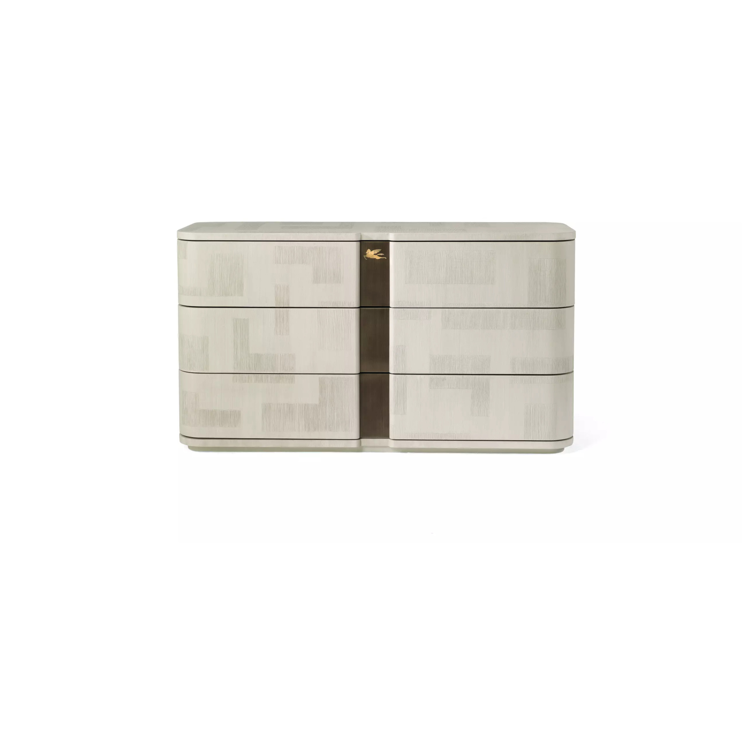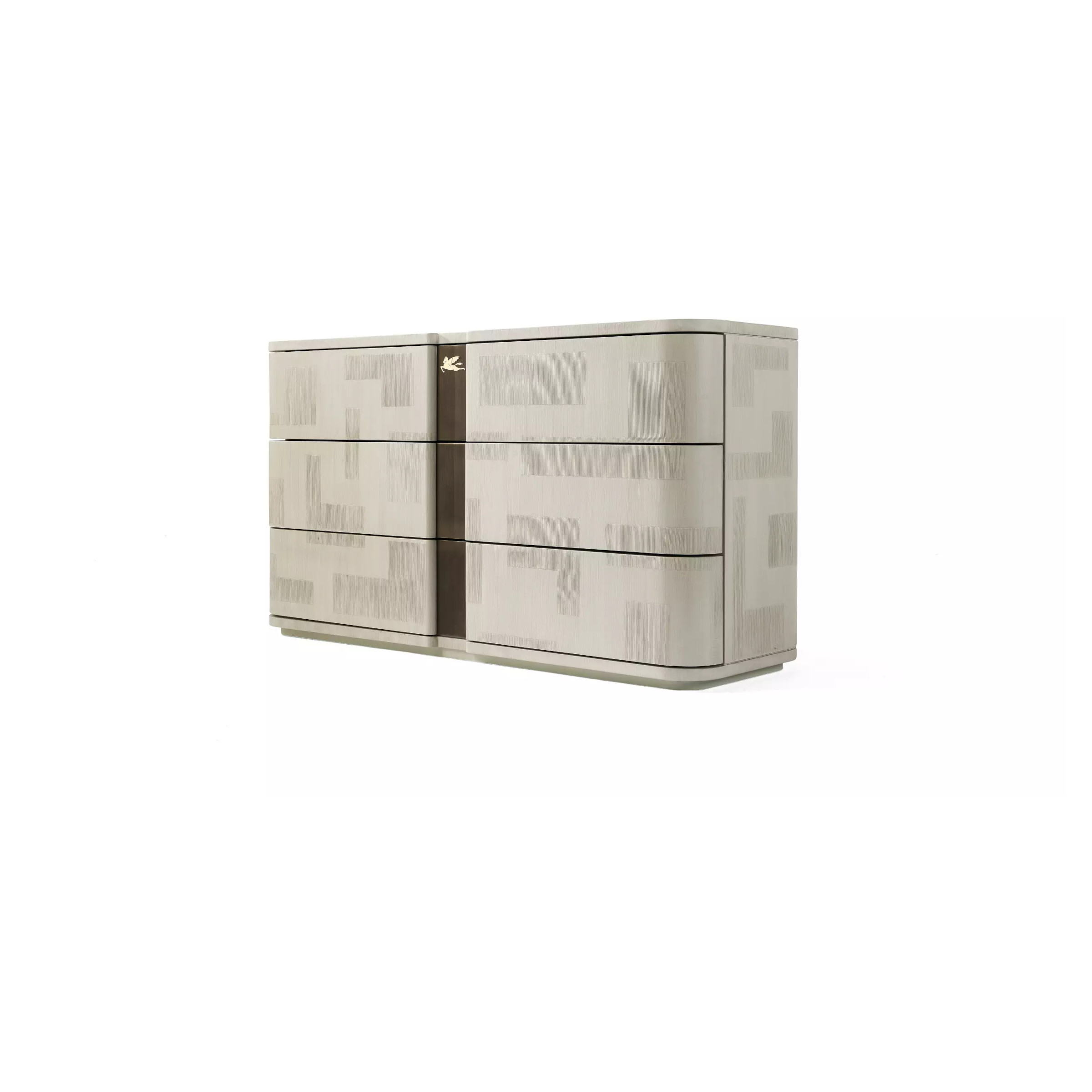 Functionality and elegance distinguish the chest of drawers of the Lasa line. The spatula finishing characterizes structure, top and front of the piece of furniture, enriched in the central part by contrasting details. The decorative Pegasus is linked to Etro’s historical identity.