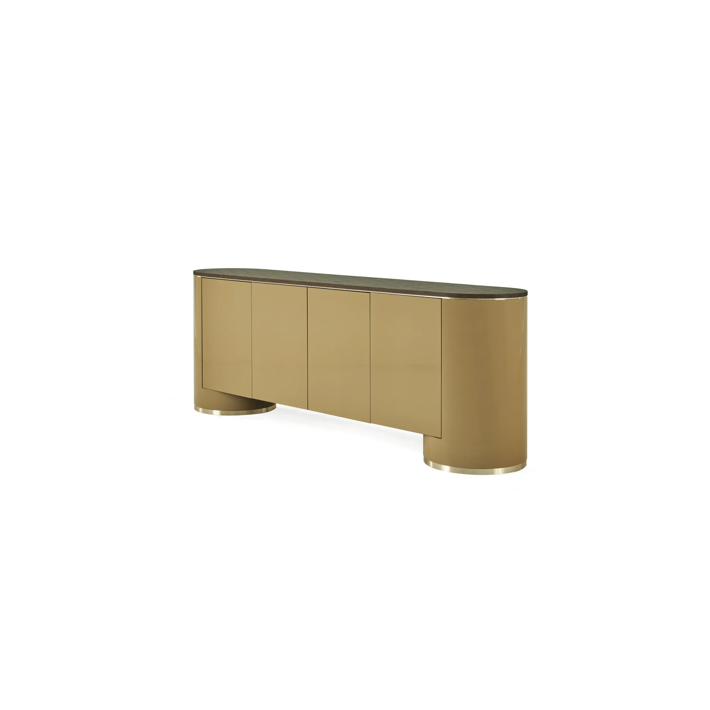 Lines inspired by the past and revisited with a modern touch characterize the sideboard from the Rotunda line. Linear and functional, the sideboard is made of wood, with vintage shapes enhanced by a lacquered finish. The arnica top completes the ensemble, creating a piece with a retro aesthetic reinterpreted in a contemporary style.