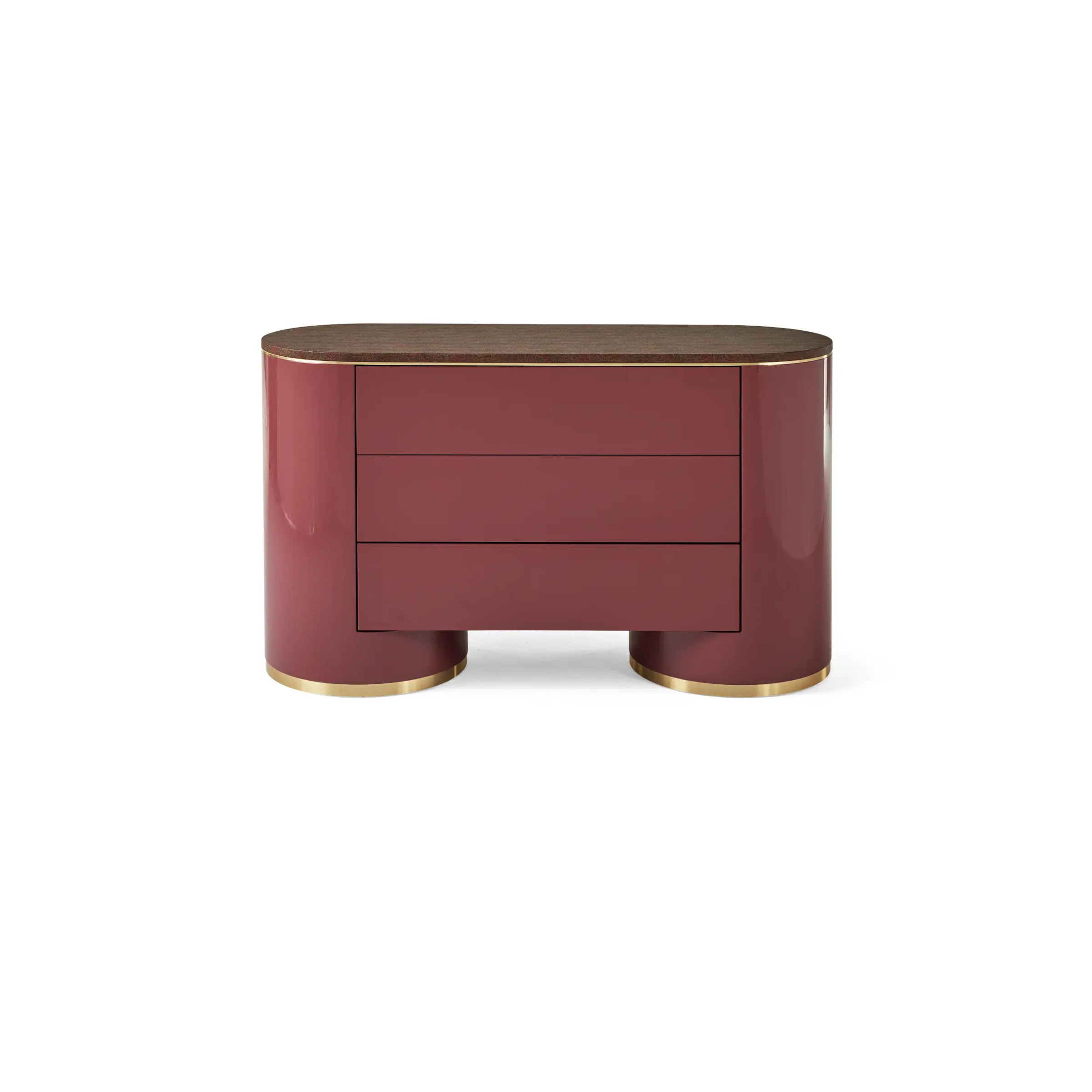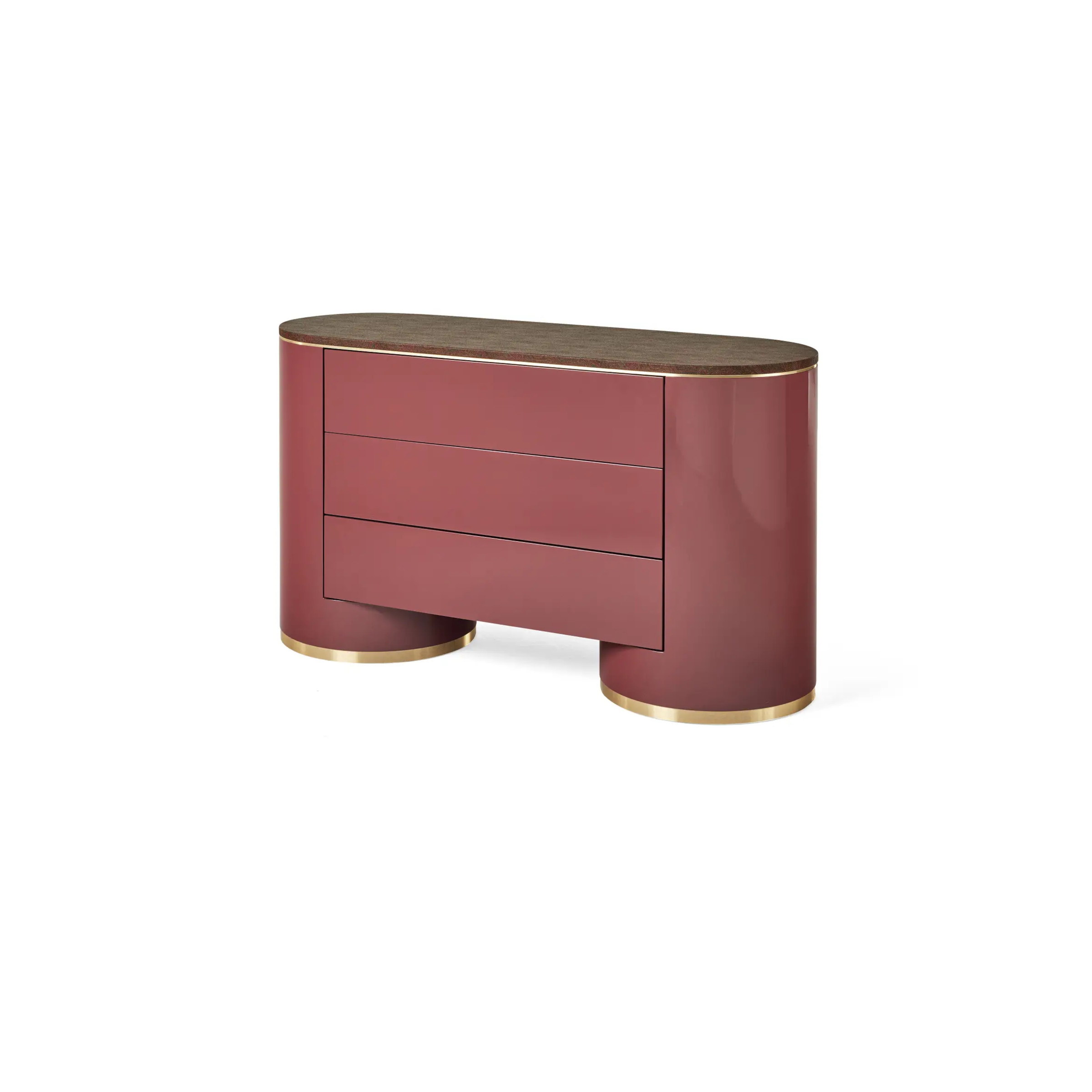 Lines inspired by the past and revisited with a modern touch characterize the drawer unit from the Rotunda line. Linear and functional, the drawer unit is made of wood, with vintage forms enhanced by a lacquered finish. The arnica top completes the ensemble, creating a piece with a retro aesthetic reinterpreted in a contemporary style.