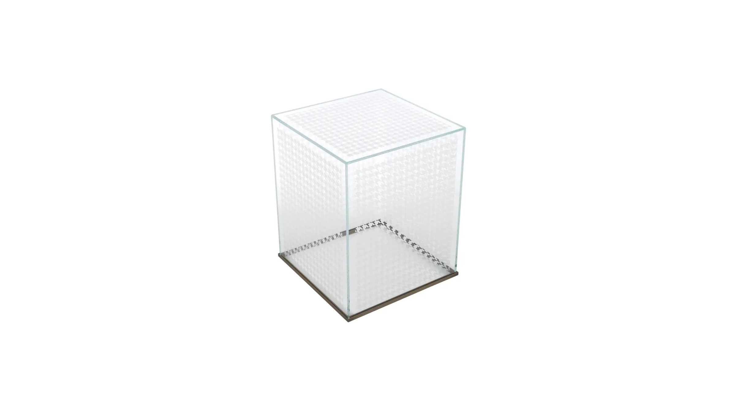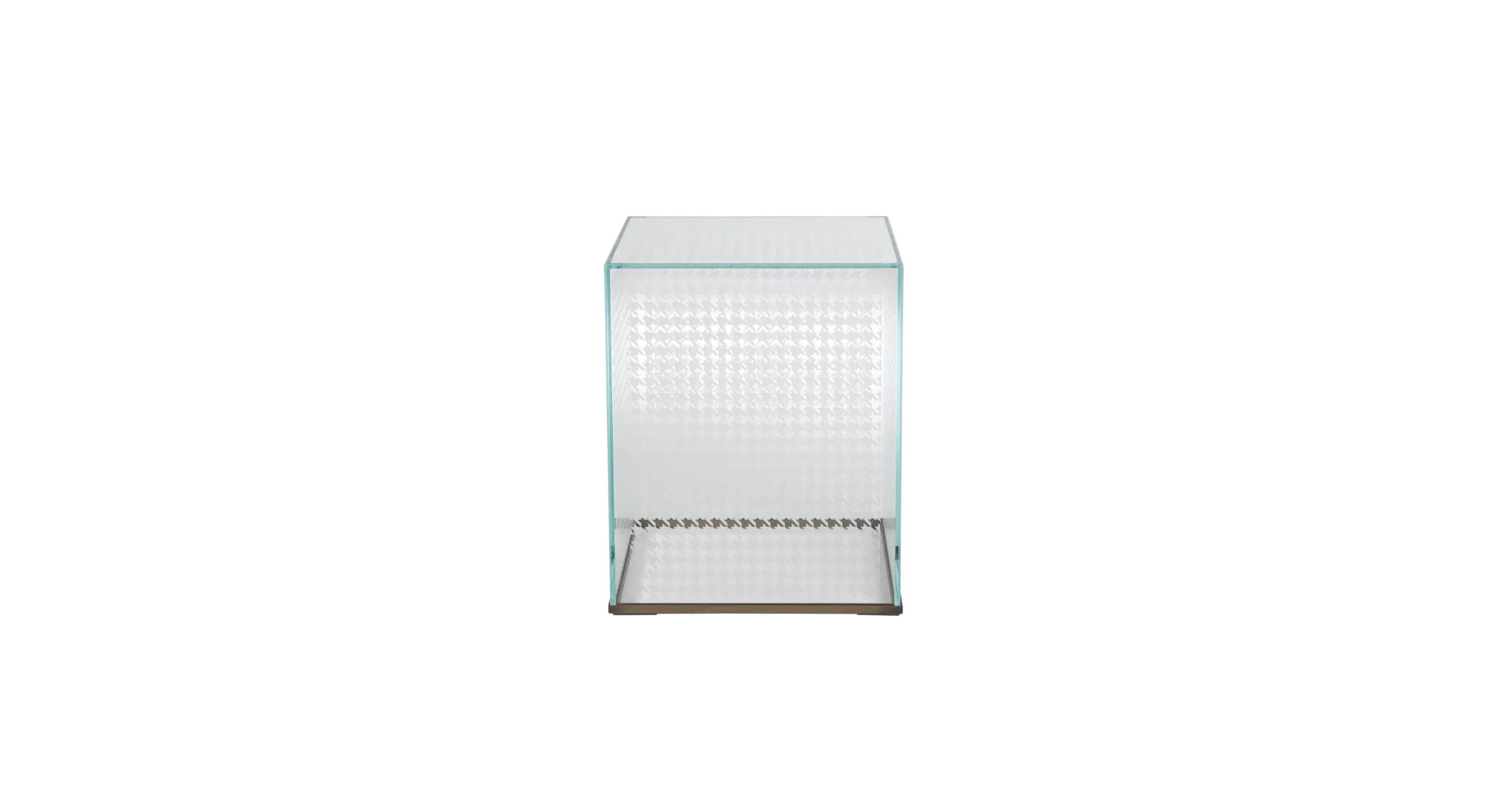 In the Echo Park side table, the minimalism of the shapes and the transparency of the glass are combined with Pied de Poule decorations, the pattern that expresses Gianfranco Ferré’s deeper identity.