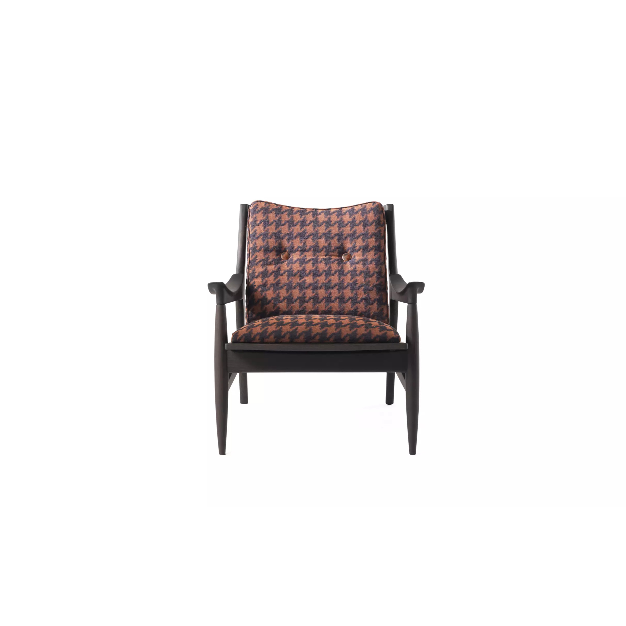 All the charm of the mid-century style for the Franklin armchair, a refined and bold piece of furniture that refers to the icons of Scandinavian design. The upholstery in the fabrics of the collection helps to express the most authentic DNA of the Gianfranco Ferré Home brand, while the wooden structure creates a warm and comfortable atmosphere.