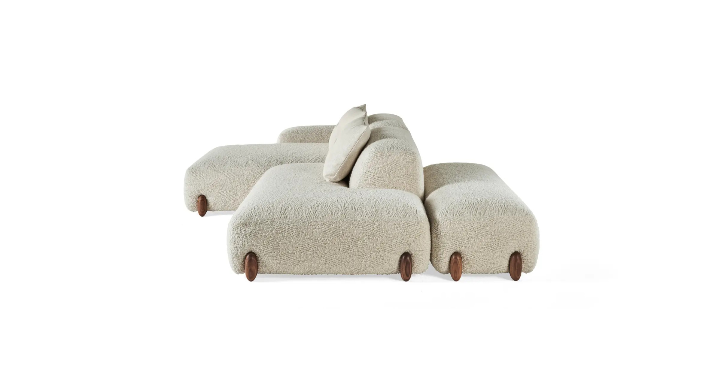 Kaunas is a sofa with a simple and welcoming aesthetic, composed of linear and modular modules, raised from the ground thanks to walnut Canaletto feet. Characterized by a spiritual mood focused on well-being, it can warm the environment through the use of fine leathers and textured fabrics, providing a sense of absolute comfort.
