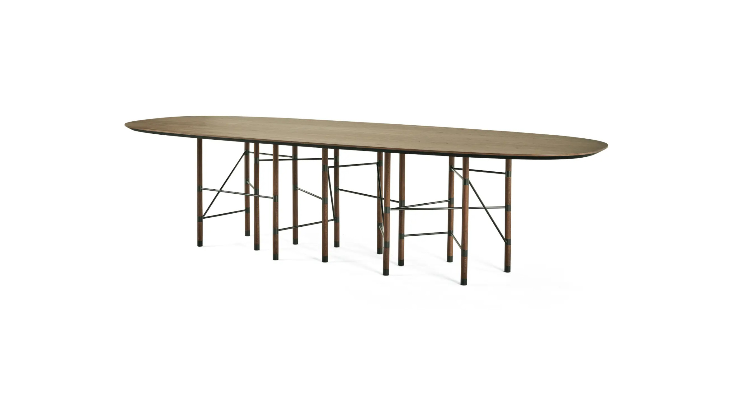 The apparent simplicity of minimalist and geometric lines acquires a warm and sophisticated appeal in the Nikko dining table. In Japandi style, elegant and functional, this table stands out for its slender legs in Canaletto walnut, connected by refined metal elements. A perfect complement for spaces seeking a balance between style, comfort, and practicality.