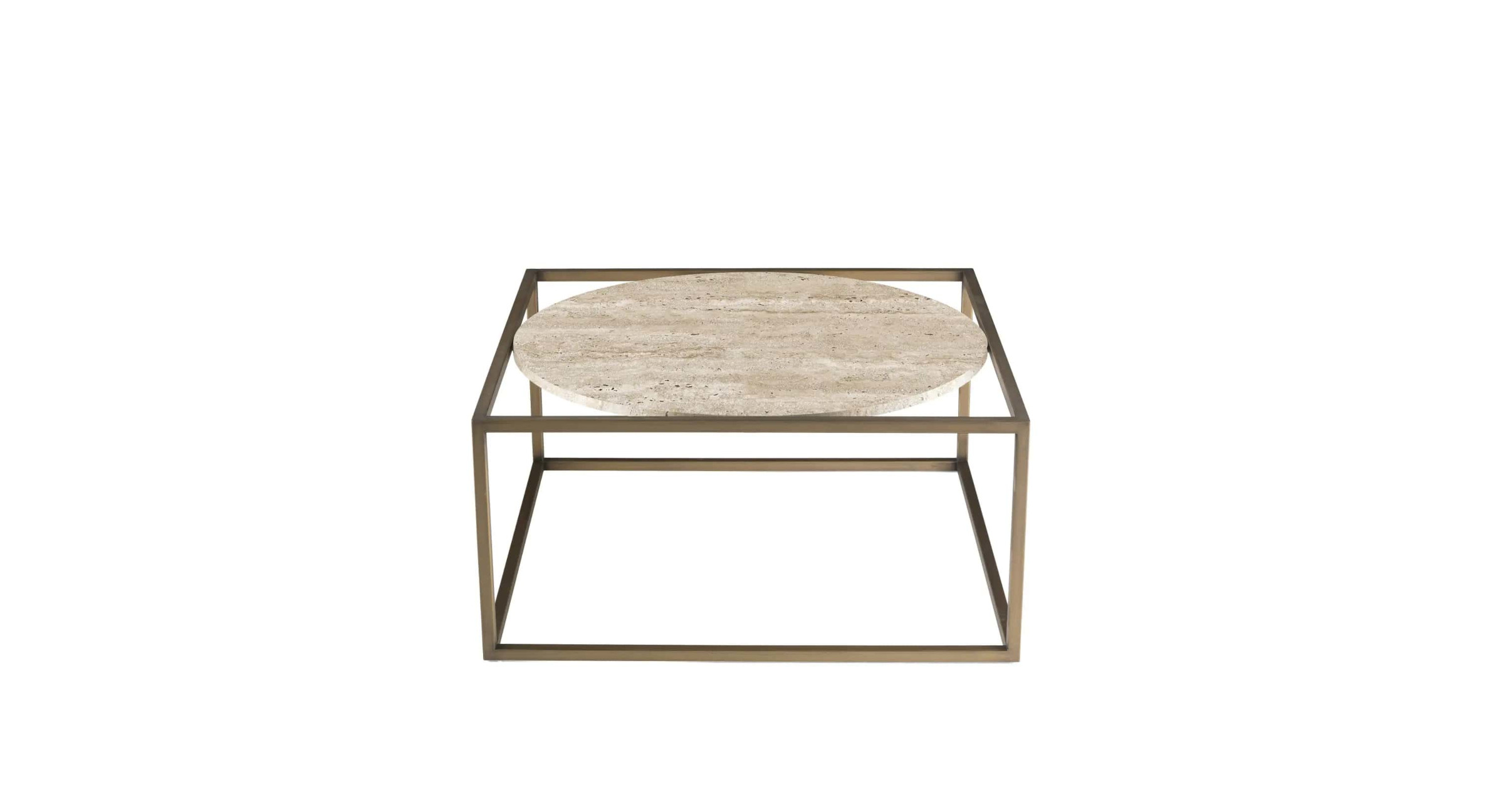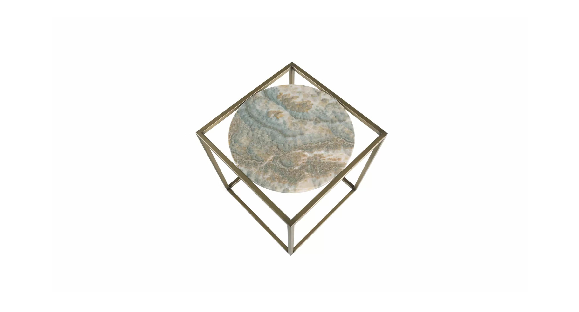 A composition of geometric shapes and different materials for a table that combines the vintage charm of the rectangular structure with the precious and timeless appeal of the round top in marble or onyx.