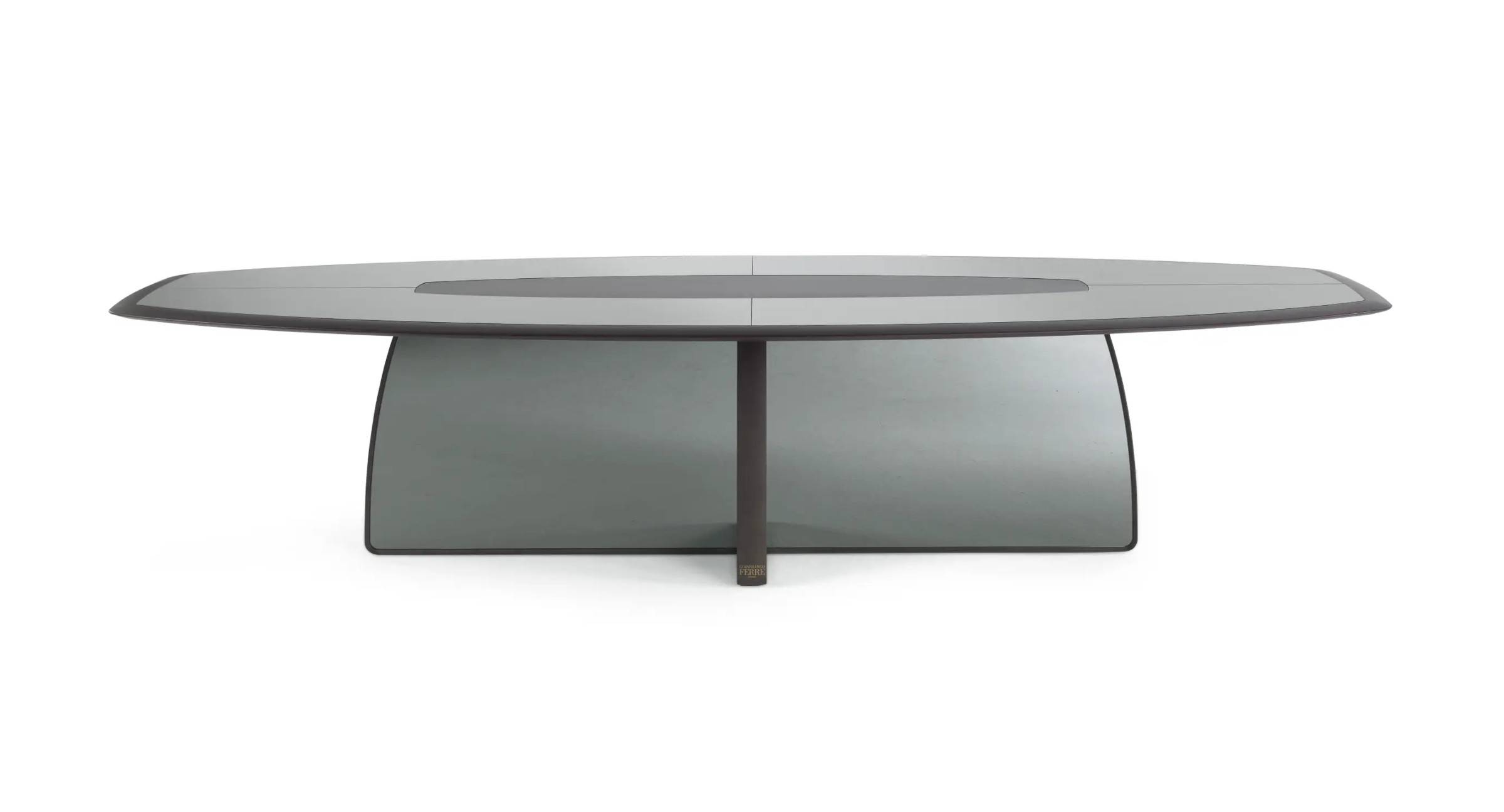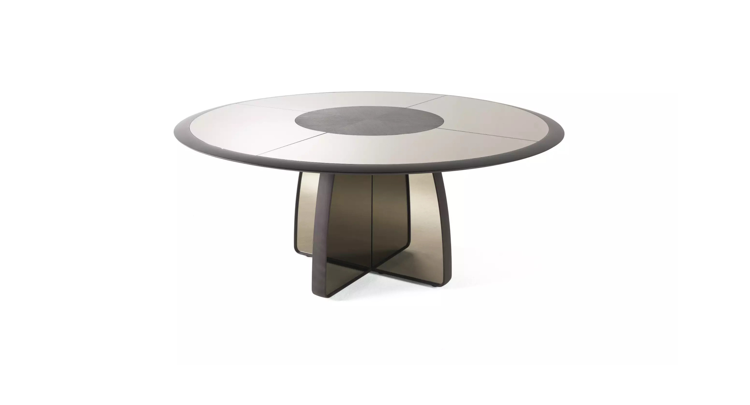 A captivating dining table that seamlessly blends design and functionality. Its unique shape features graceful curves and precise details. The sculptural structure is defined by mirror panels, which give lightness to the whole and add a touch of luxury.