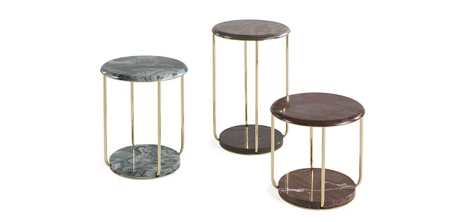 An enchanting mix of styles and references for the Ambar side table where the composition reminding the shape of an African percussion meets the precious charm of the marble.