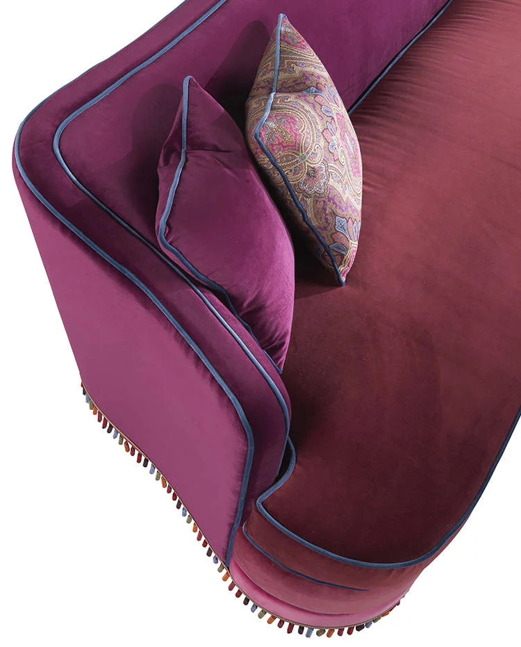 An attractive and comfortable sofa inspired by a ‘thousand-and-one-nights’ imagery. The combination of different fabrics and the original, multicoloured trimming contribute to create an original sofa, in perfect Etro Home Interiors style.