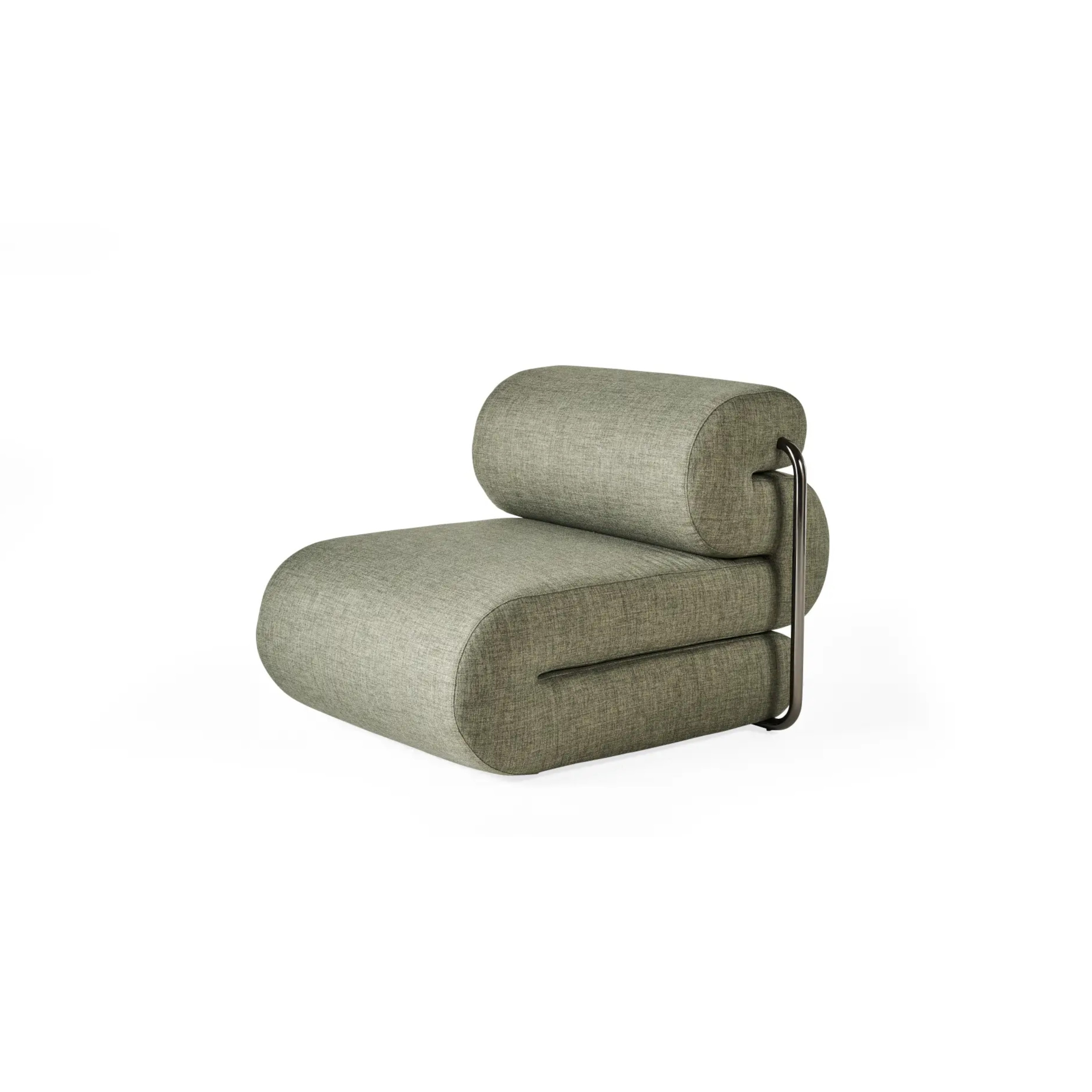 Kamppi is a dramatic and sculptural armchair, characterized by the distinctive ‘S’ shape of its cushions, which are wrapped around themselves and supported by a metal structure finished in the collection’s styles. This piece of furniture exudes retro charm, while its unique design and high-quality materials make it a standout element in any setting.