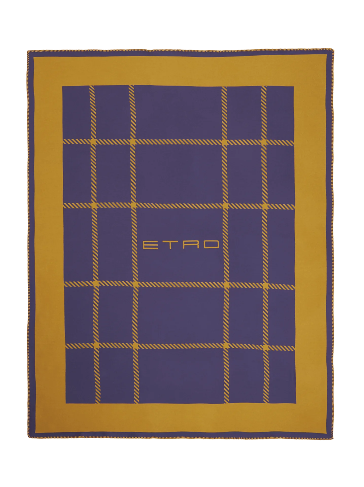 Wool and modal throw blanket with large edge, decorative tartan motif and contrasting Etro logo. Finished with blanket stitch.
