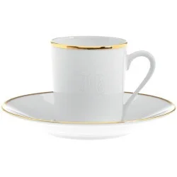 The Profile Gold collection from Gianfranco Ferré Home exudes class and elegance in minimalist form. This coffee cup and saucer set is made from crisp, white porcelain with a smooth texture, and showcases attractive gold rim detail. Discover the full range of the Profile Gold collection, or mix and match with other Gianfranco Ferré Home designs for a magnificent table setting.
