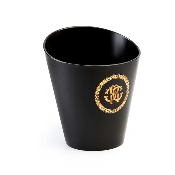 Serve your drinks in style with the small wine cooler from the Roberto Cavalli Home Monogramma Black Collection. This wine cooler features a stylish gold Roberto Cavalli monogram printed on black methacrylate. Stunning and practical, this wine cooler pairs well with other items from the Roberto Cavalli Home collection.