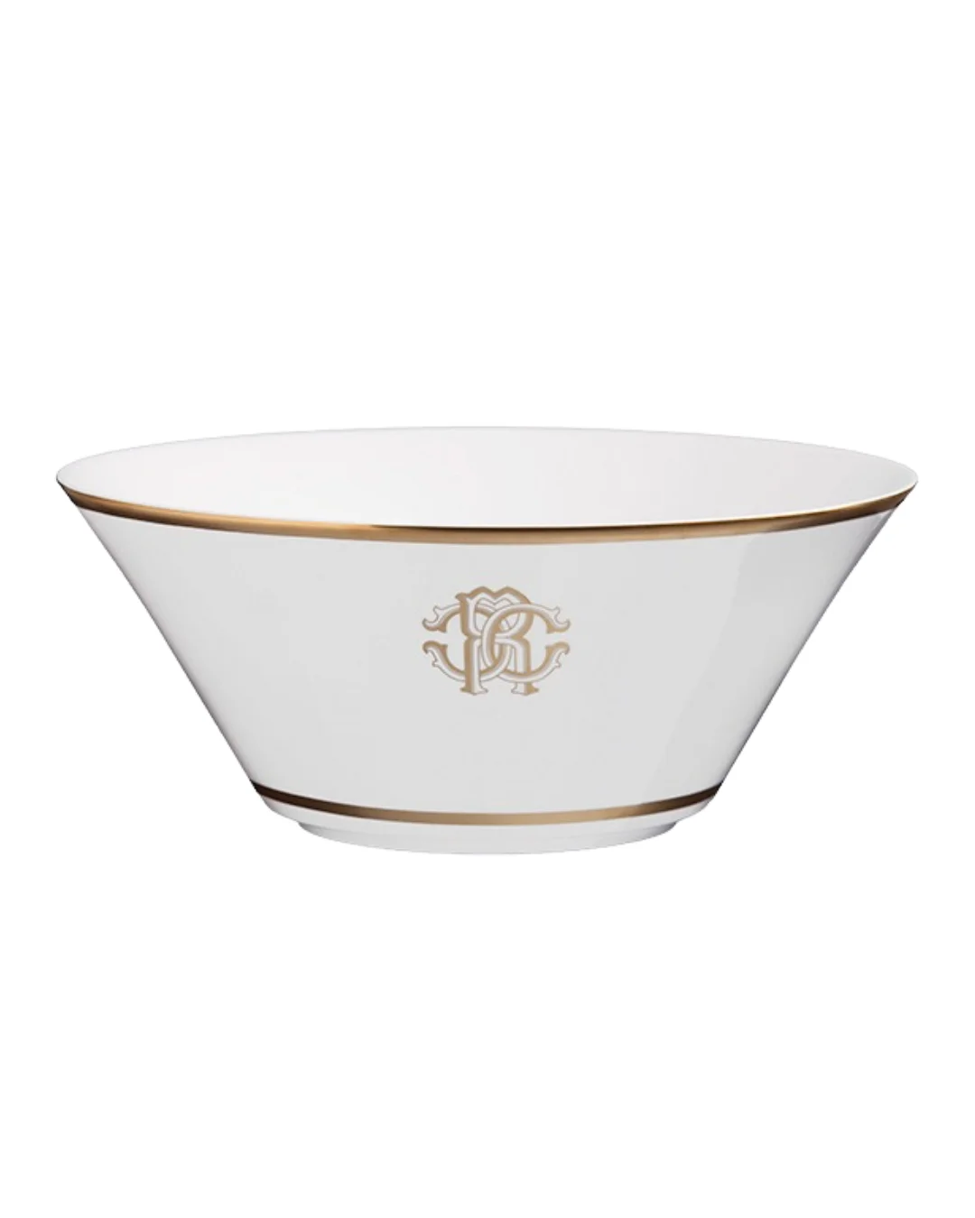 One of Roberto Cavalli’s divine tableware collections, Silk Gold is made from fine bone china and features exquisite gold rim detail and the gold monogram. This salad bowl showcases the refined and elaborate work of the collection beautifully. Mix and match these pieces with other Roberto Cavalli designs or find other pieces from the Silk Gold Collection available.