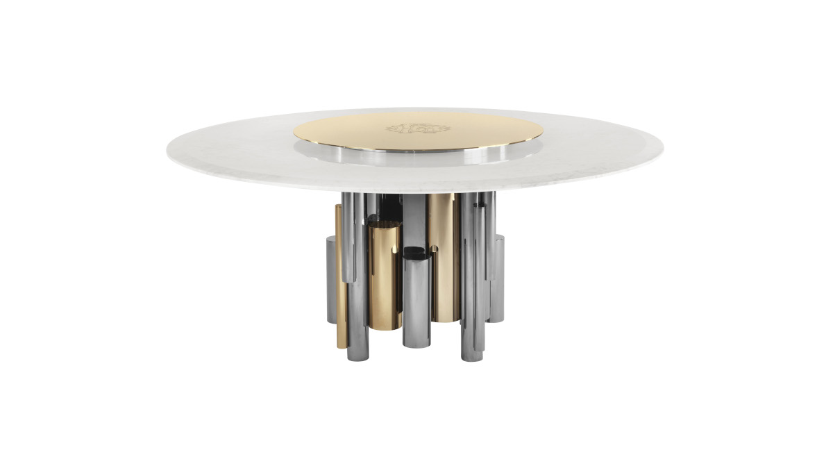 An enchanting interplay of materials and heights for the Antigua table. The sculpture at the base is an elegant feature that illuminates the whole, enriched by a luxurious top that creates a captivating ambiance. This distinctive piece of furniture adds an impactful touch to any environment.