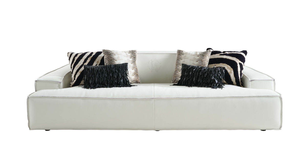 Assal is a sofa with soft and sensual shapes – an invitation to relaxation and conviviality. Its clean design and subtle elegance are enhanced by the upholstery with decorative stitching. The sinuous lines of the sofa confirm the evocative power of the name Assal, an African lake in Djibouti, that transports us to the wild lands that have always been a source of inspiration for Roberto Cavalli world. A reference which is now more delicate and lighter, helping to transform the living room into a welcoming and suggestive domestic landscape.