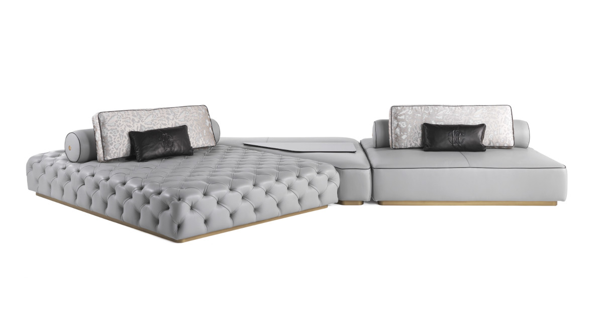 Darlington.2 is an iconic sectional sofa of the Roberto Cavalli Home Interiors collection, characterized by a refined capitonné finishing. The sofa is available in different versions, all perfectly representing the brand’s sensual and bold character, and is completed by cushions with wild animal patterns.
