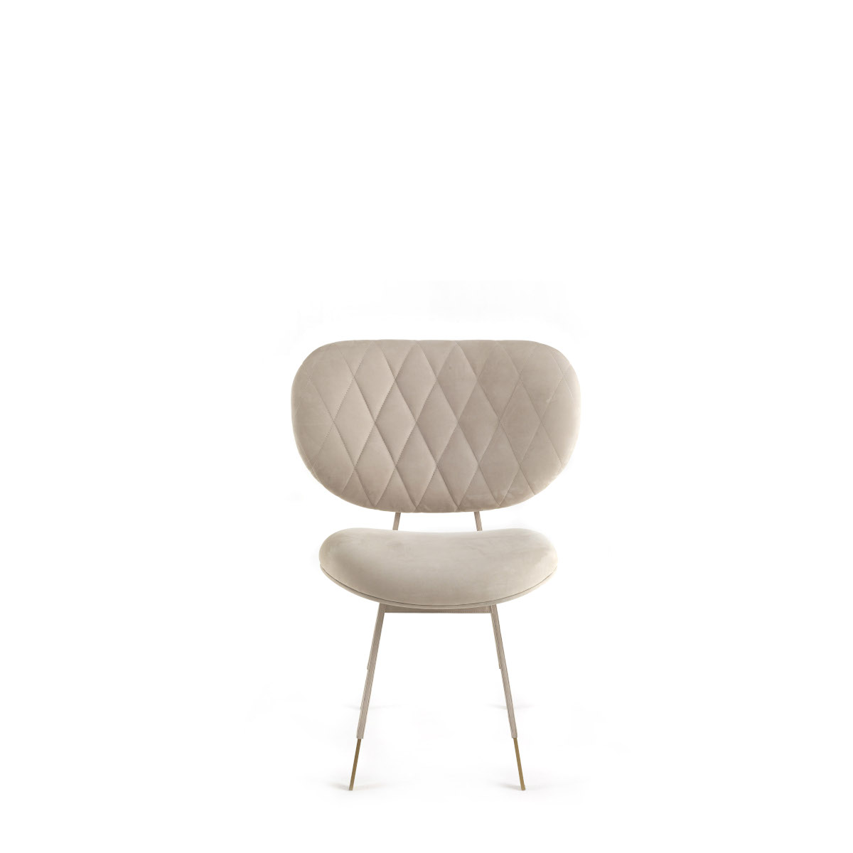 Grace is a chair with a true diva-inspired aesthetic. Adorned with a lozenge-quilted back, Grace can be upholstered in the fabrics or leathers from the collection. The brushed metal legs, also customizable with optional leather covering, complete the look, creating a piece of furniture able to add a touch of refined glamour in any space.