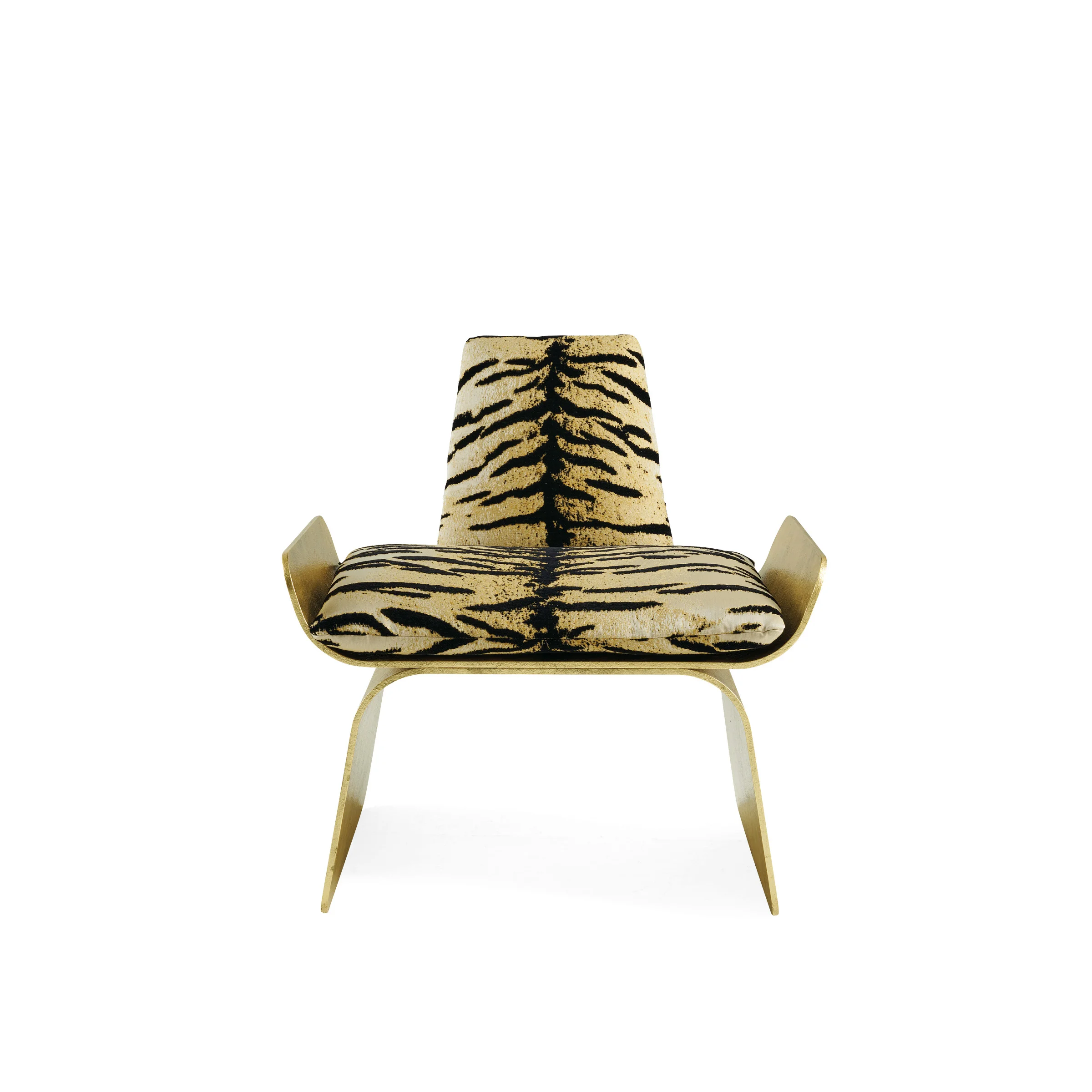 Iranja is a small armchair with compact proportions and a captivating geometric design. The cushion covered in animalier fabric makes the seat comfortable while enriching the decoration in perfect Roberto Cavalli Home Interiors style. Available also as a bench without seatback.