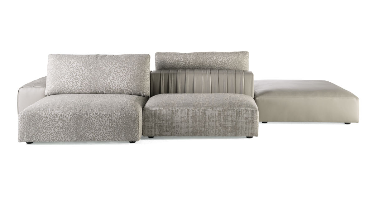 A wide and comfortable seat for the new Kingston sectional sofa. Customizable in both composition and upholstery, it offers the possibility to mix and match different finishes and processes for each set. The refined manufacturing of the seatback is the main feature of this original sofa, where pleated elements recall the typical finishes of Roberto Cavalli's bags creating a perfect combination between experimental design and tailored decoration.