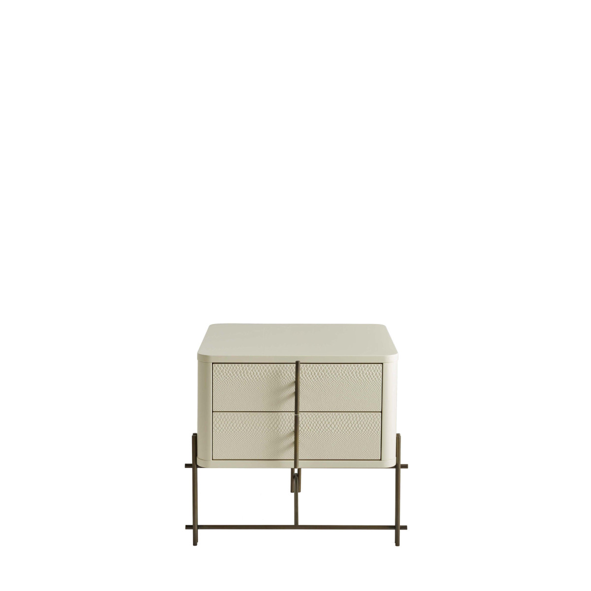 The new Misali line, made up of night table, dressing table and drawer unit, completes the sleeping area with its airy and elegant lines. Resting on a thin metal base, the night table offers two drawers and a comfortable support surface, combining functionality and aesthetic.
