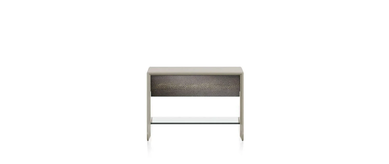 The perfect complement for a bedroom with a rock and gritty style, the Morne night table combines wood with python textures and antique bronze finishing.