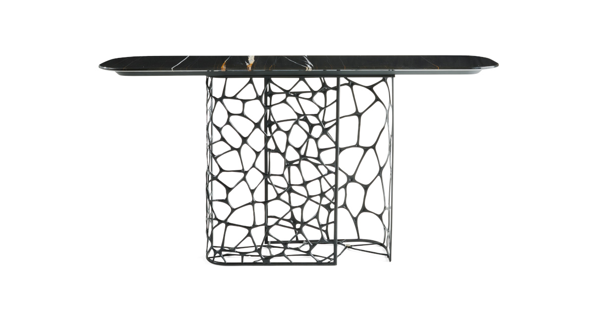 The most striking feature of the Sioraf console is undoubtedly its hand-chiselled base, reminiscent of the brand's signature giraffe pattern. A piece of furniture with a special artistic value, perfect to combine with other elements of the collection to create a charming setting with a glam-chic appeal.