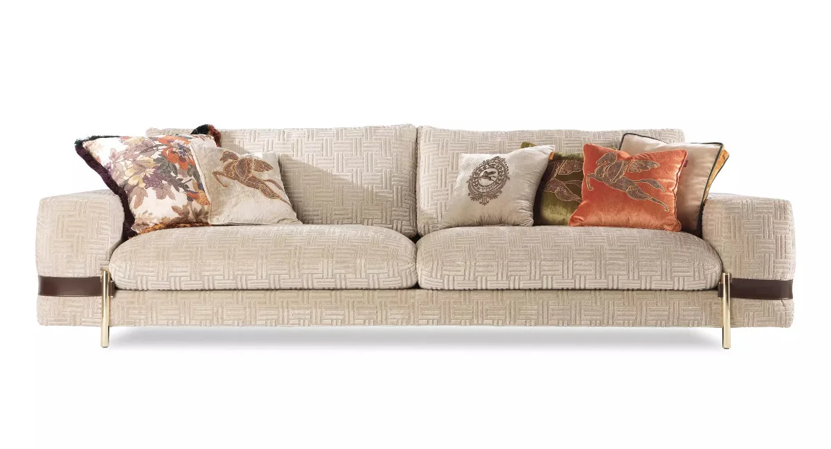 Classic, soft and elegant lines for the Madras sofa, upholstered with the iconic fabrics of ETRO Home Interiors collection. Enhanced by the leather belt, a contrasting decorative element that underlines the harmony of the shapes, the sofa expresses the brand’s most institutional character through details such as the buckle in brass with Etro logo.