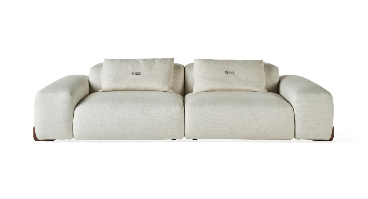 Kaunas is a sofa with a simple and welcoming aesthetic, characterized by geometric and linear shapes and raised from the ground thanks to walnut Canaletto wooden feet. Its spiritual mood focused on well-being can warm the environment through the use of fine leathers and textured fabrics, providing a sense of absolute comfort.