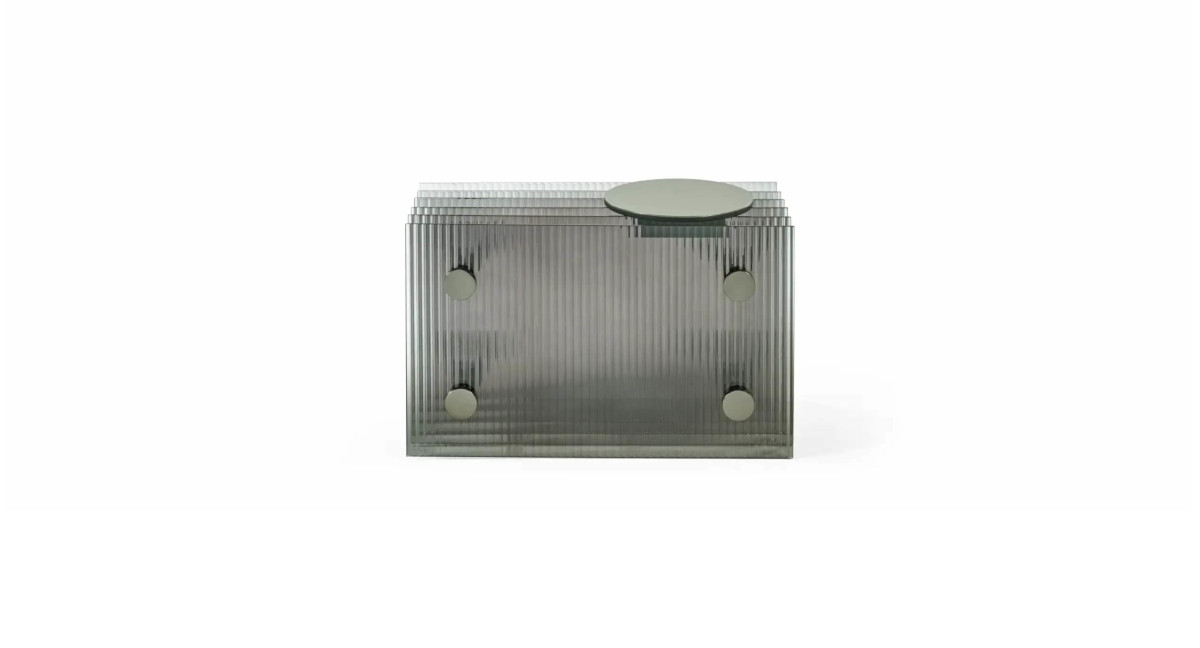 Veil is a delicate and original design table that plays with the theme of presence and absence through the use of glass. Made of fluted glass in gray and natural colors, it is enriched with elegant chromed metal inserts. Veil stands out for its visual lightness and contemporary style, making it perfect for adding a sophisticated touch to any setting.