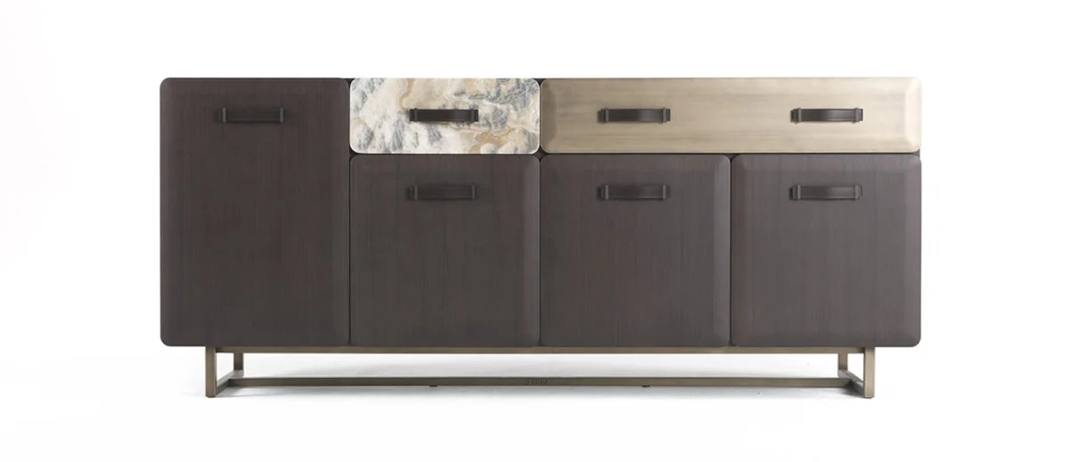 Fine marble, precious woods and bright metallic finishes. A special composition of different materials for a furniture with a metropolitan and unconventional charm.