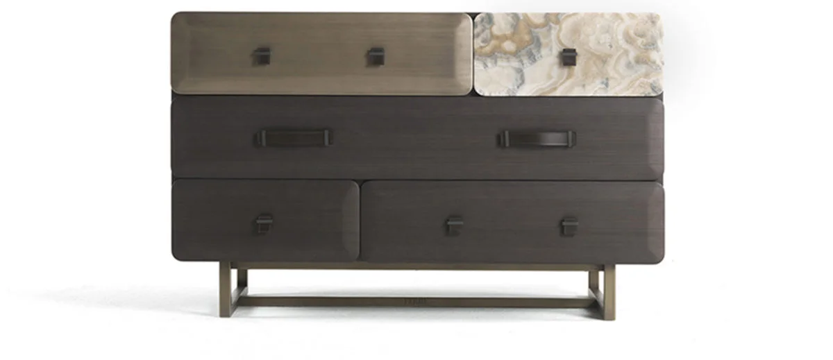 Fine marble, precious woods and bright metallic finishes. A special composition of different materials for a furniture with a metropolitan and unconventional charm.