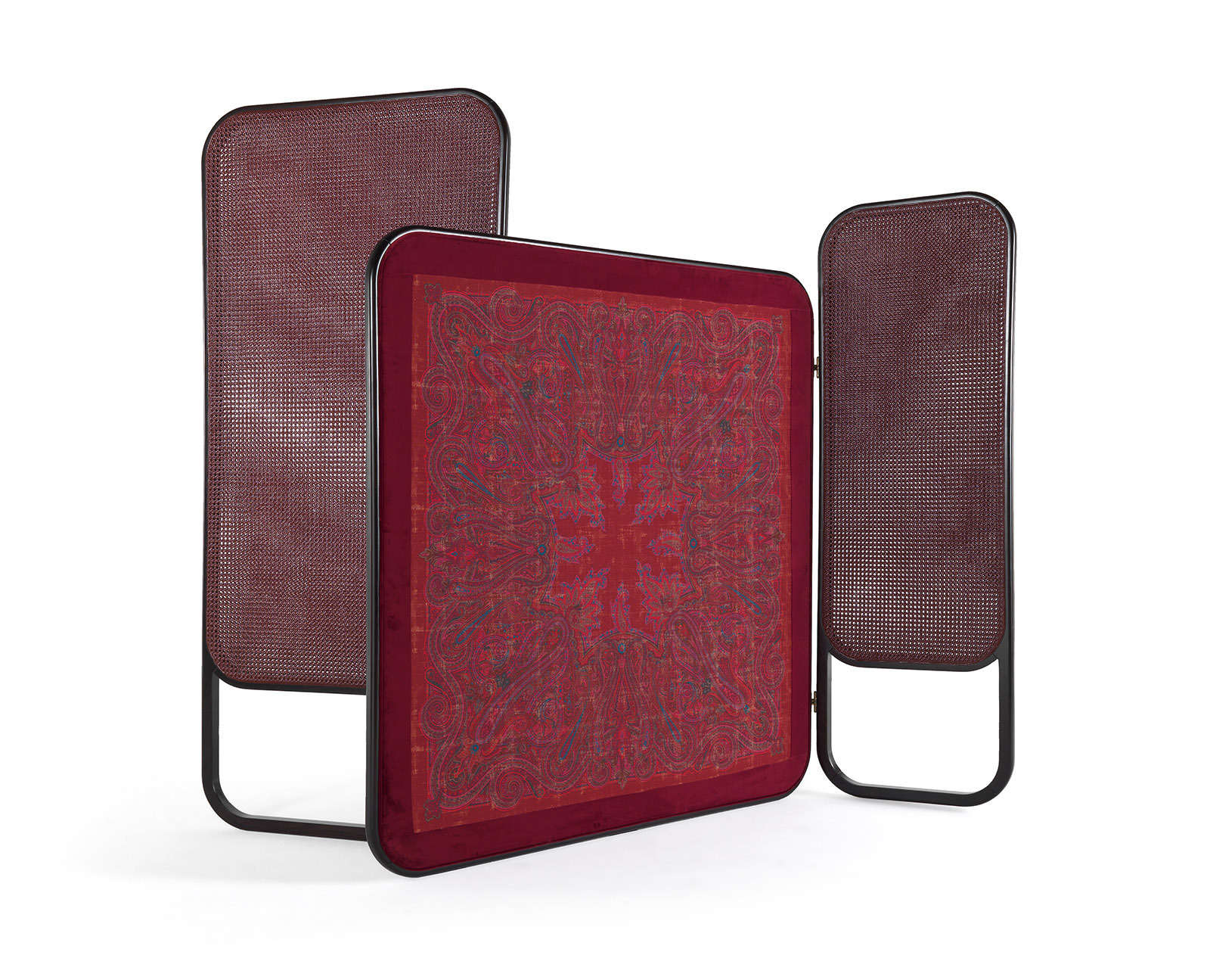 Majestic and scenographic, Timgad screen gains a prominent position in the space where it is inserted. Artistically mixing components in Vienna straw with elements upholstered with fabrics from the Etro Home Interiors collection, it is completed by the presence of little monkeys decorating the set and adding an ethnic and ironic touch in perfect Etro’s style.