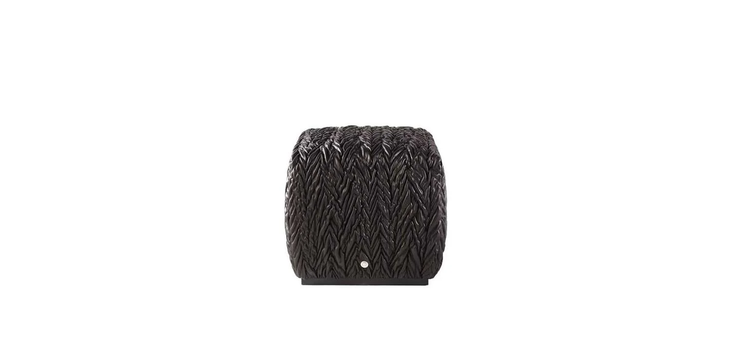 Chic and bold, the Waddi pouf is upholstered in black leather with “Spiga” quilting, a refined workmanship that refers to the Cavalli leather goods and demonstrates the sartorial skills of the brand.