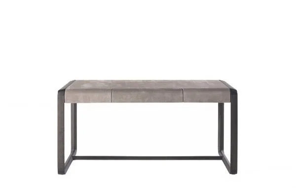 Elegant and functional, the Wynwood desk fascinates the viewer with its essential lines and refined charm. Made of solid beech wood dyed Smokey Grey, the desk is upholstered in soft nubuck for a comfortable and welcoming effect, while the slightly curved top lends it lightness.