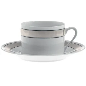 This elegant, minimalist tea set from the Gianfranco Ferré Home tableware collection is made from pure porcelain and displays platinum/silver band detailing in both the cup and saucer. Containing 6 pairs of cups and saucers, this tea set features exquisite pieces that pair well with other designer tableware from the Gianfranco Ferré Home collection.