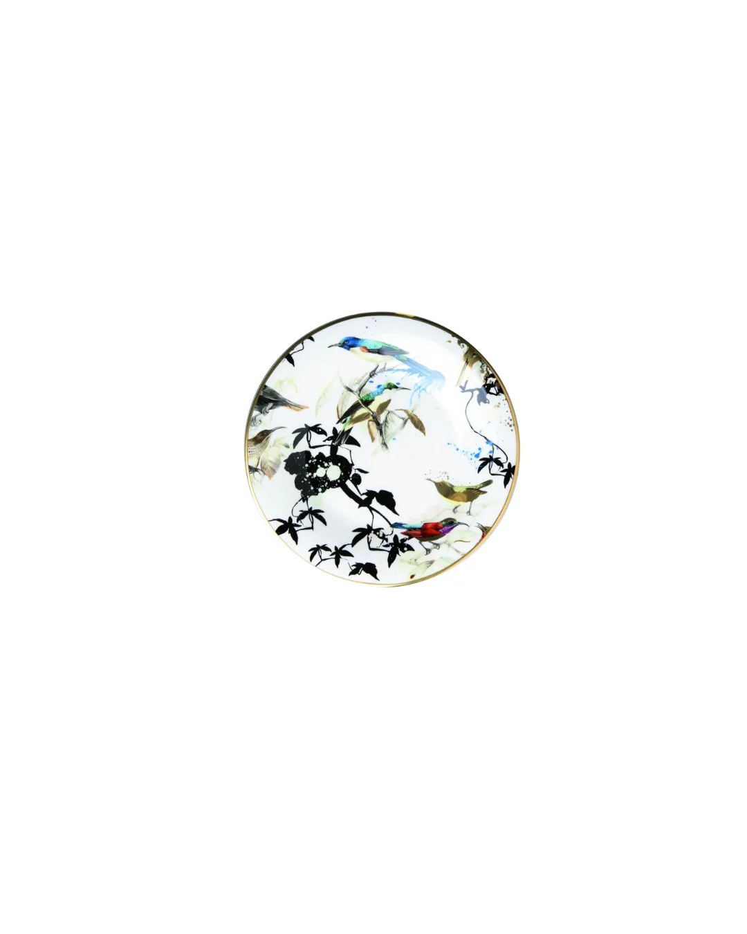 Add a bright splash of color to your dinner table by incorporating various pieces from the Roberto Cavalli Home Garden Birds tableware collection in your next luxurious table setting. Crafted from 100% fine bone china, the items of the Garden Birds collection are adorned with a multi-colored, whimsical bird design and enhanced with ornate gold detailing.The bread or butter plate is a wonderful addition to the other pieces in the Garden Bird Collection, all of which are perfect to add a sense of chic style to any table.