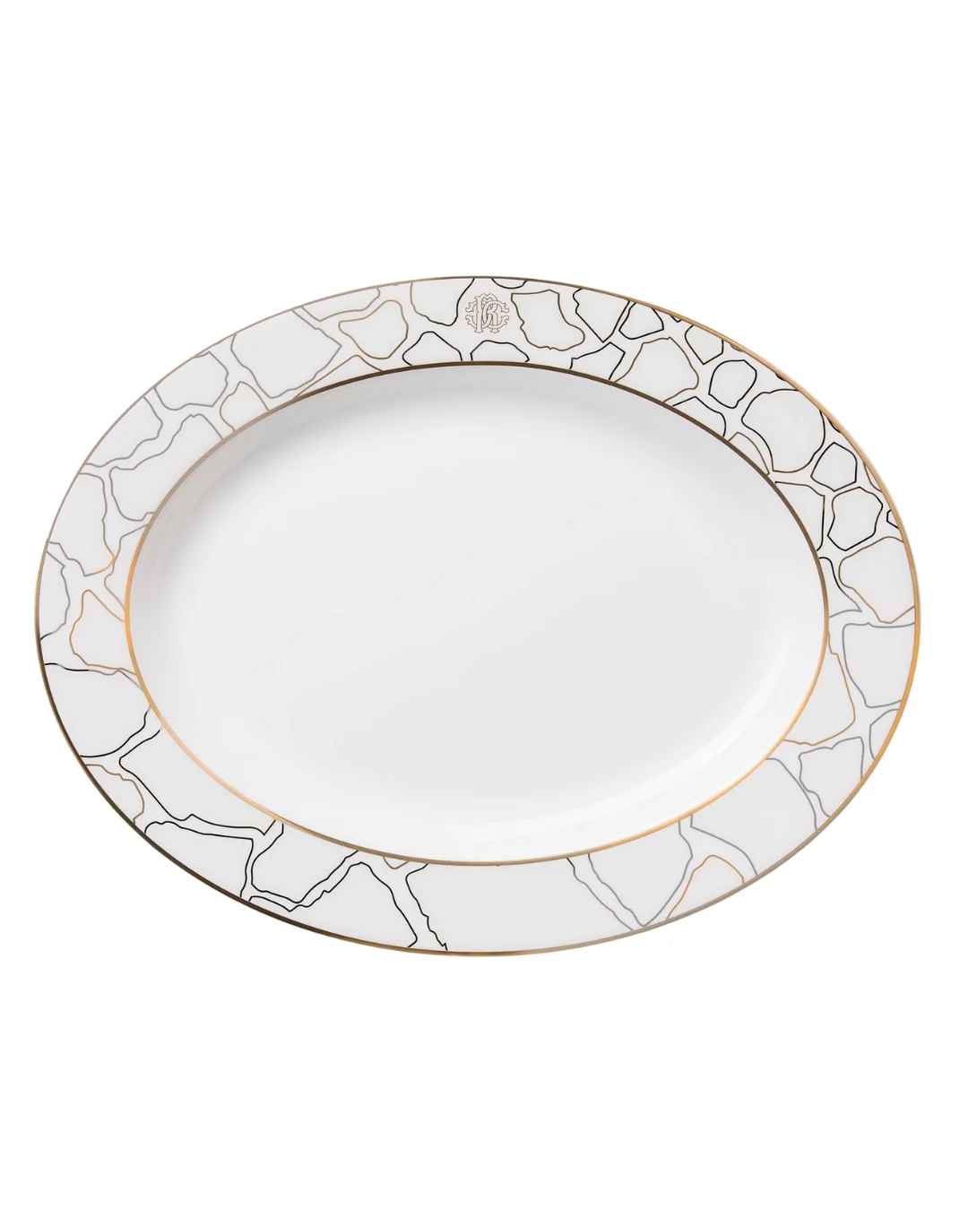 A Safari-themed table setting is not complete without this stunning oval dish from Roberto Cavalli’s Giraffa Luxury Tableware Collection. Made of genuine porcelain, the luxurious oval dish is designed after the reticulated skin pattern of a real giraffe with an elegant gold rim detail. Mix and match it with other Roberto Cavalli Luxury Tableware designs to achieve the effect you have in mind!